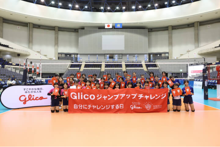 Glicoは、女子バレーボールチームSAGA久光スプリングスが運営するスプリングスアカデミーの理念「子供の豊かな成長を育む」に賛同し、子どもたちへのバレーボール教室「Glico ジャンプアップチャレンジ」をサポートしています。