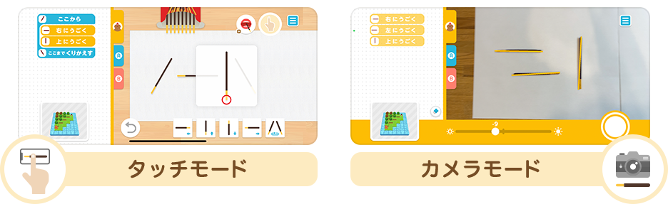 並べたポッキーをカメラで読み込む「カメラモード」で、ハグハグを動かします。