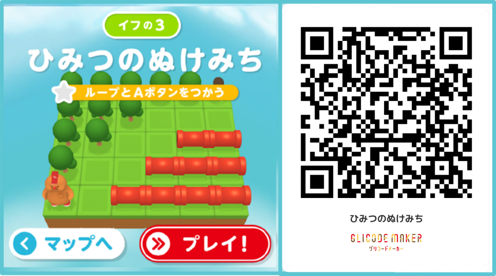 こちらのステージを遊ぶ場合、「GLICODE MAKER」のアプリをインストールいただき、画像のQRコードを読み取ってください。