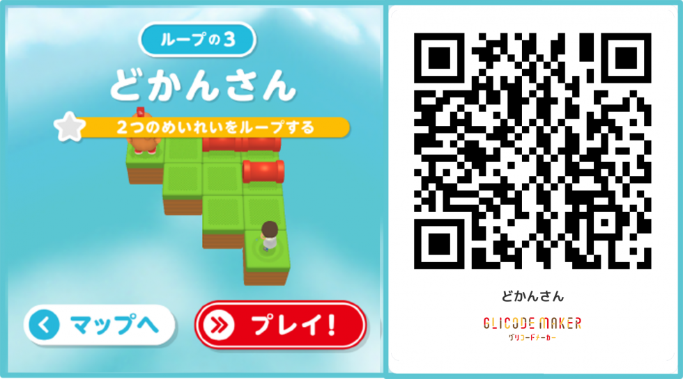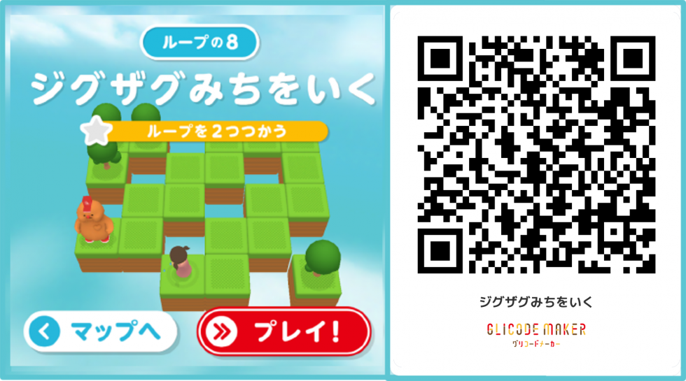 こちらのステージを遊ぶ場合、「GLICODE MAKER」のアプリをインストールいただき、画像のQRコードを読み取ってください。
