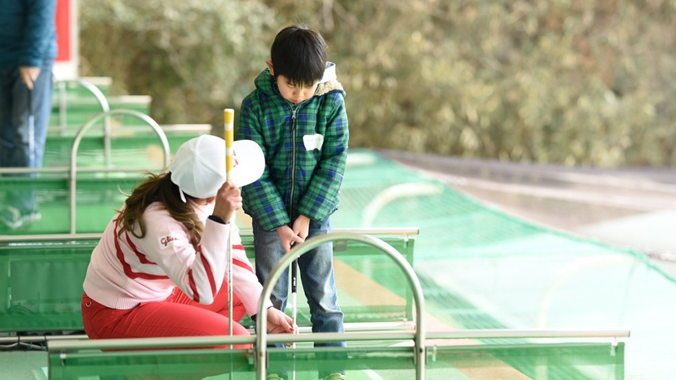 まずは午前の部「キッズ教室」から。今回集まっていただいた子どもたちのほとんどが小学生で、約半分がゴルフクラブを握ったこともない初心者。西選手がゴルフを始めたのも6歳の時だったそうで、当時の自分を重ねつつ「今回のレッスンをきっかけに、少しでもゴルフやスポーツに興味を持ち、何かひとつでも子どもたちに夢中になれるものを見つけてほしい」と話してくれました。