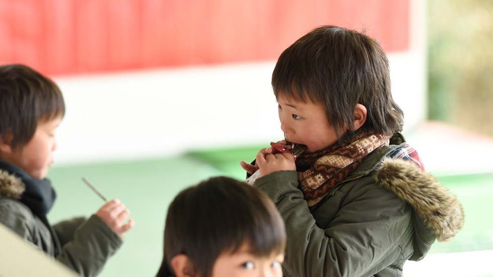 何度かボールに当たる感触をつかむまでとにかく練習です。徐々に当たる確率が上がってきたころで、いったん休憩をはさみました。休憩中は、Glicoのお菓子をほおばりながら、友達同士でアドバイス。