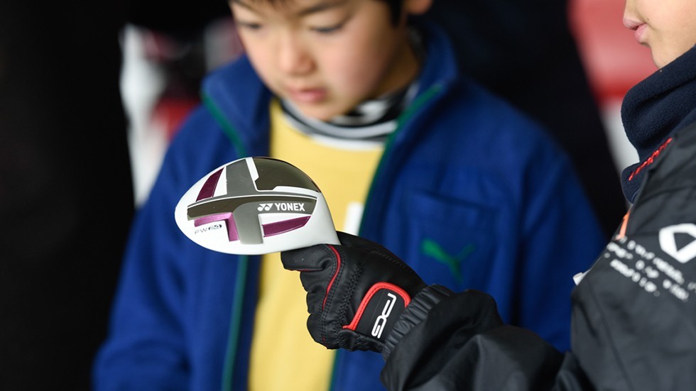 休憩後は、「好きなクラブでやってみよう!」と西選手。「これ見たことある!」とドライバーを握る子どもたち。短い時間の中で、いろんな経験をさせようという西選手の想いが見てとれました。