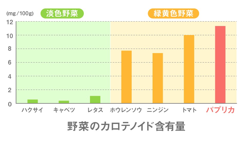 パプリカの特徴は、「カロテノイド」と呼ばれる色素が多く含まれていること。