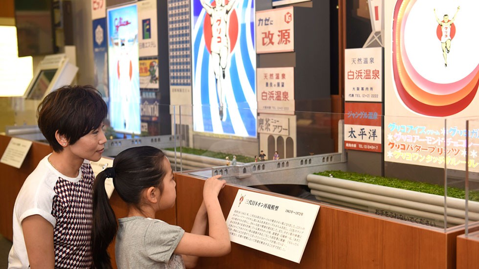 続いて向かったのは「道頓堀グリコネオンの変遷とその時代」と題した特別展のエリア。開催期間中(〜2016年9月30日まで)は、初代から5代目のグリコサインのジオラマを見ることができます。