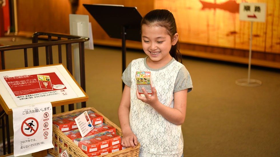 江崎記念館の親子で楽しめる展示は、もちろん特別展だけではありません。常設展も見どころがたくさんあります。例えば、創業時代から最近までのグリコのおもちゃを展示している「グリコおもちゃの歴史」のコーナーでは、大人は思い出話に花が咲き、子どもはお気に入りのおもちゃを見つけようと夢中に。展示の前から動かなくなるなんてこともよくあるそうです。