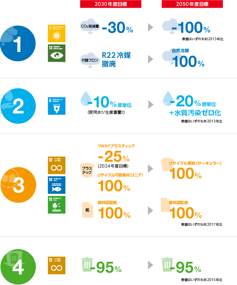 江崎グリコ株式会社は、この度、2050年をゴールとする中長期の環境ビジョン「Glicoグループ環境ビジョン2050」を策定しました。当ビジョンでは「気候変動への対応・温室効果ガスの削減」「持続可能な水資源の活用」「持続可能な容器・包装資源の活用」「食品廃棄物の削減」の4つの領域でKPIを設定しており、これらの取り組みを通じ、資源循環社会の実現に向け、企業市民としての責務を果たしてまいります。
