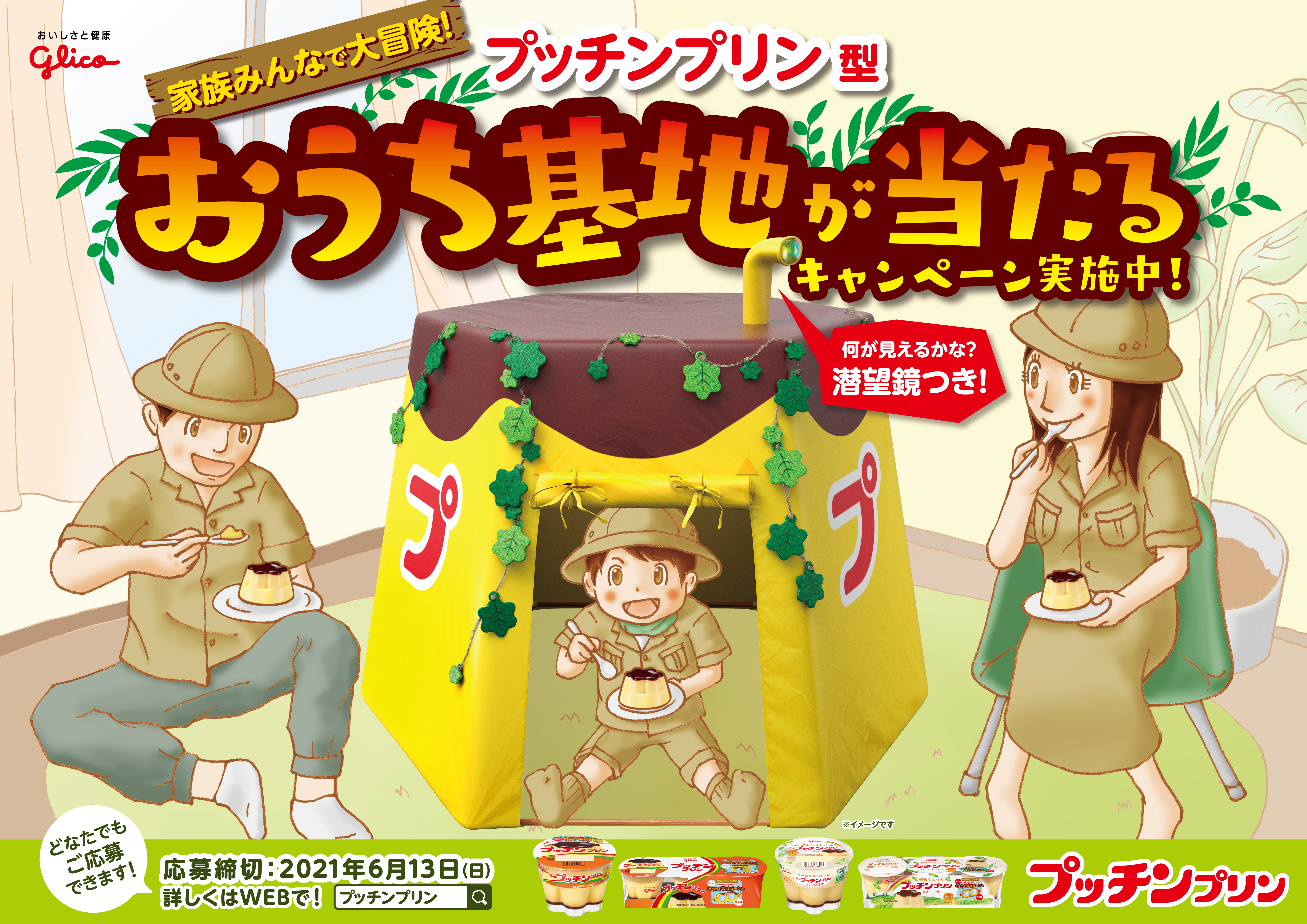 江崎グリコ株式会社は、「こどもの日」に向けて盛り上げを図るため、「プッチンプリン」の形を模した「プッチンプリン型おうち基地」が抽選で50名様に当たるキャンペーンを、4月12日(月)より開始します。長くなったおうちで過ごす時間でも、わくわく冒険気分が味わえます。