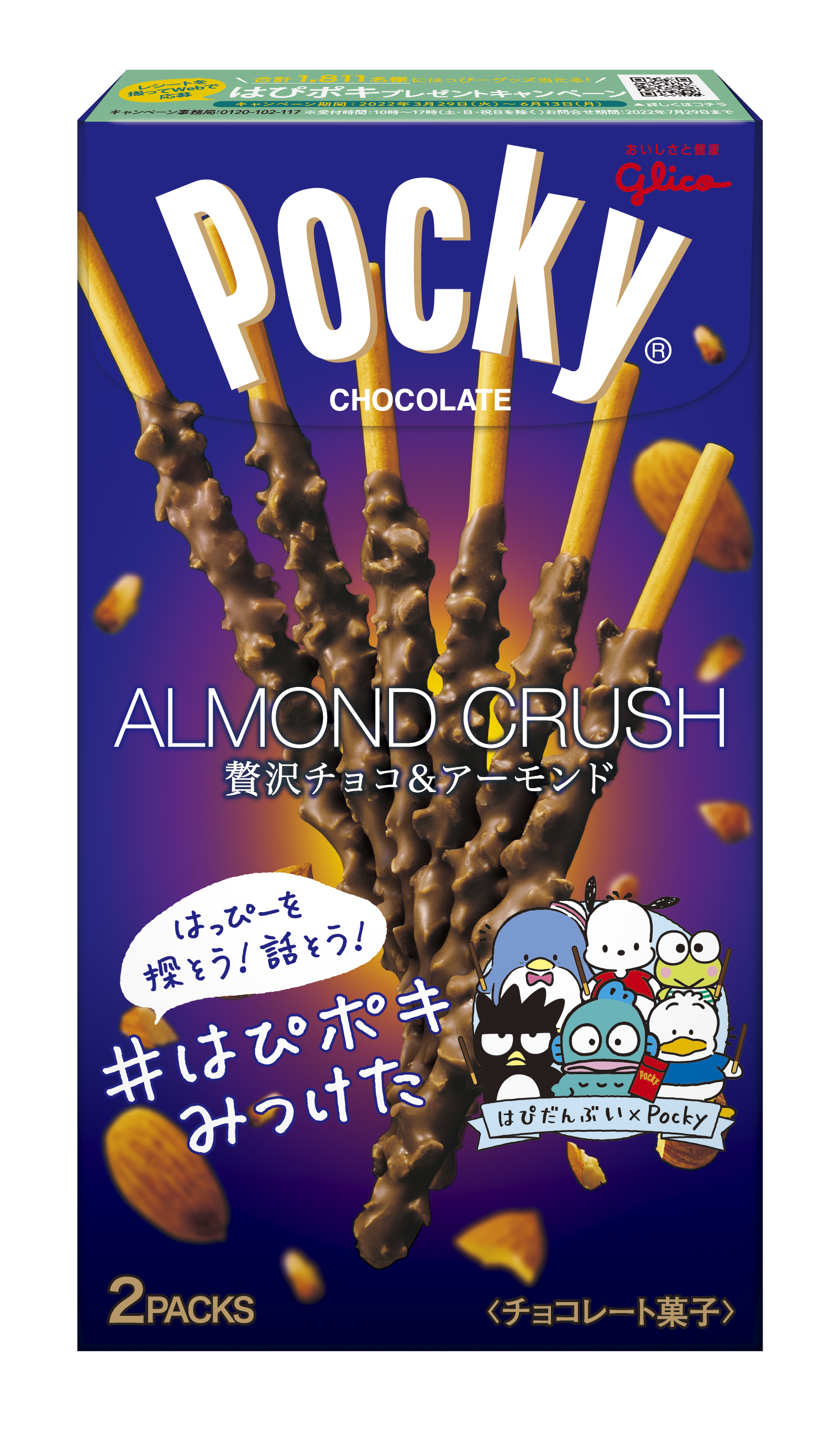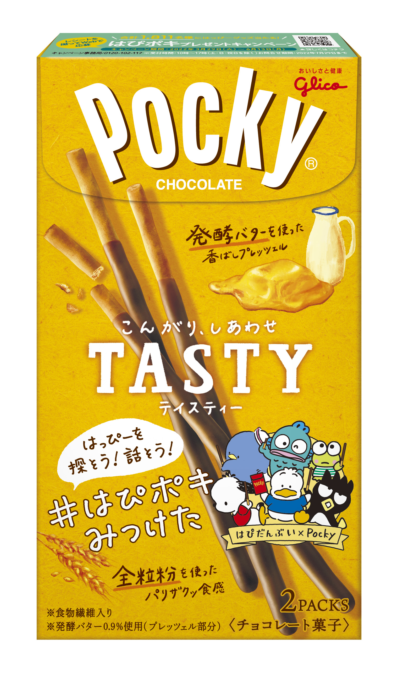 江崎グリコ株式会社は、「ポッキー」と、株式会社サンリオのキャラクターユニット「はぴだんぶい」とのコラボレーションによるキャンペーンを2022年3月29日(火)より実施します。「#はぴポキみつけた」をテーマに、はっぴーを探すゲームが楽しめる限定パッケージを販売するほか、自分の推しポッキーに投票する「#春の推しポキ総選挙」を実施します。