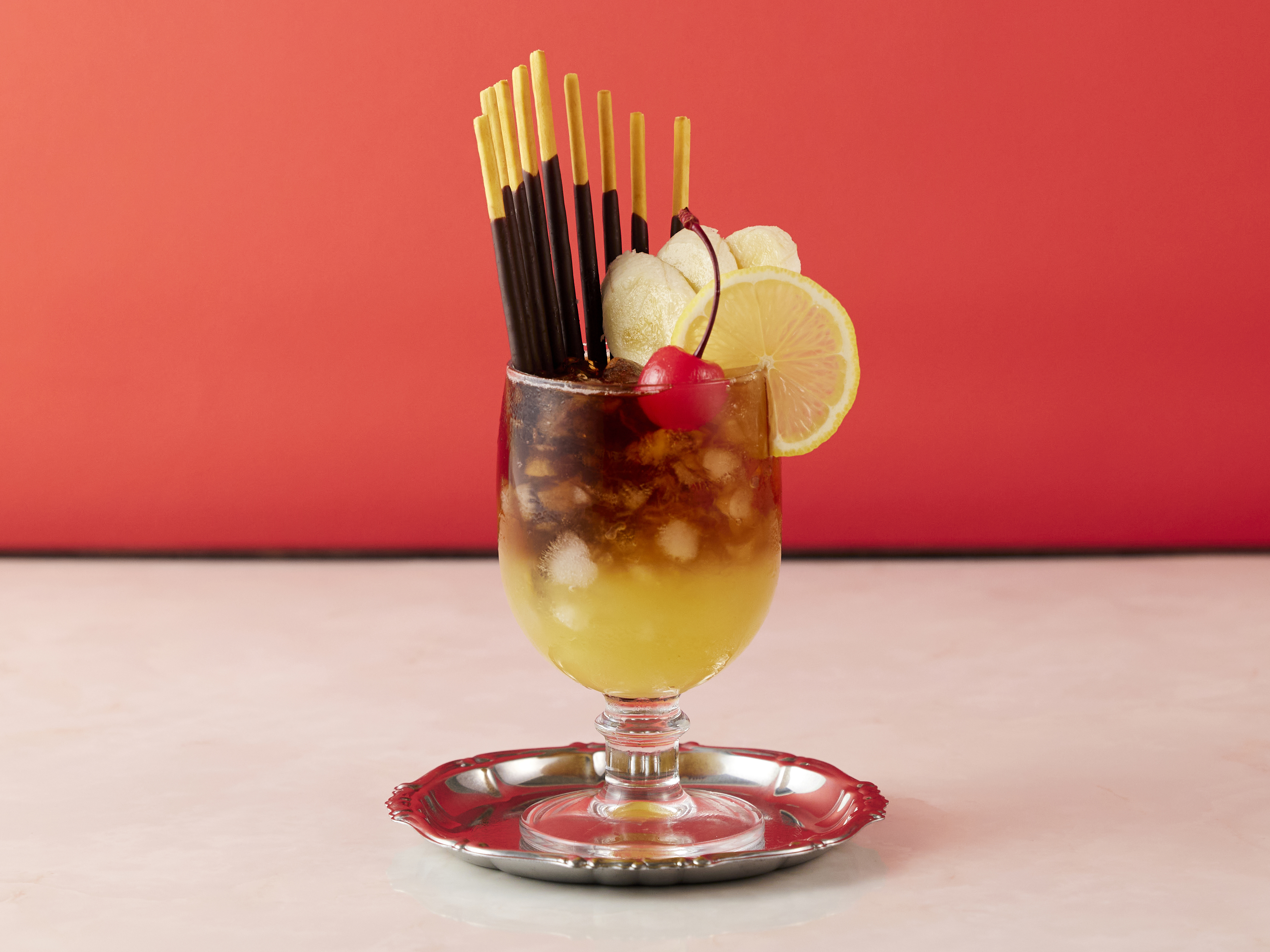 「ポッキー・オン・ザ・ロック」の起源は1976年に展開した広告キャンペーンです。氷を入れたグラスに「ポッキー」を立て、お酒のマドラー代わりにして楽しむ食べ方のことで、当時、飲食店などで「ポッキー」がマドラー代わりに使われていることを担当者が聞きつけたことから採用されました。今回のキャンペーンではその「ポッキー・オン・ザ・ロック」を令和版にアレンジ。グラスにお好みの「ポッキー」とドリンク、氷を入れて、さらにアイスやフルーツをトッピングする食べ方として進化し、自分なりのアレンジや見た目の楽しさも取り入れた、作る時間も楽しめる提案となっています。