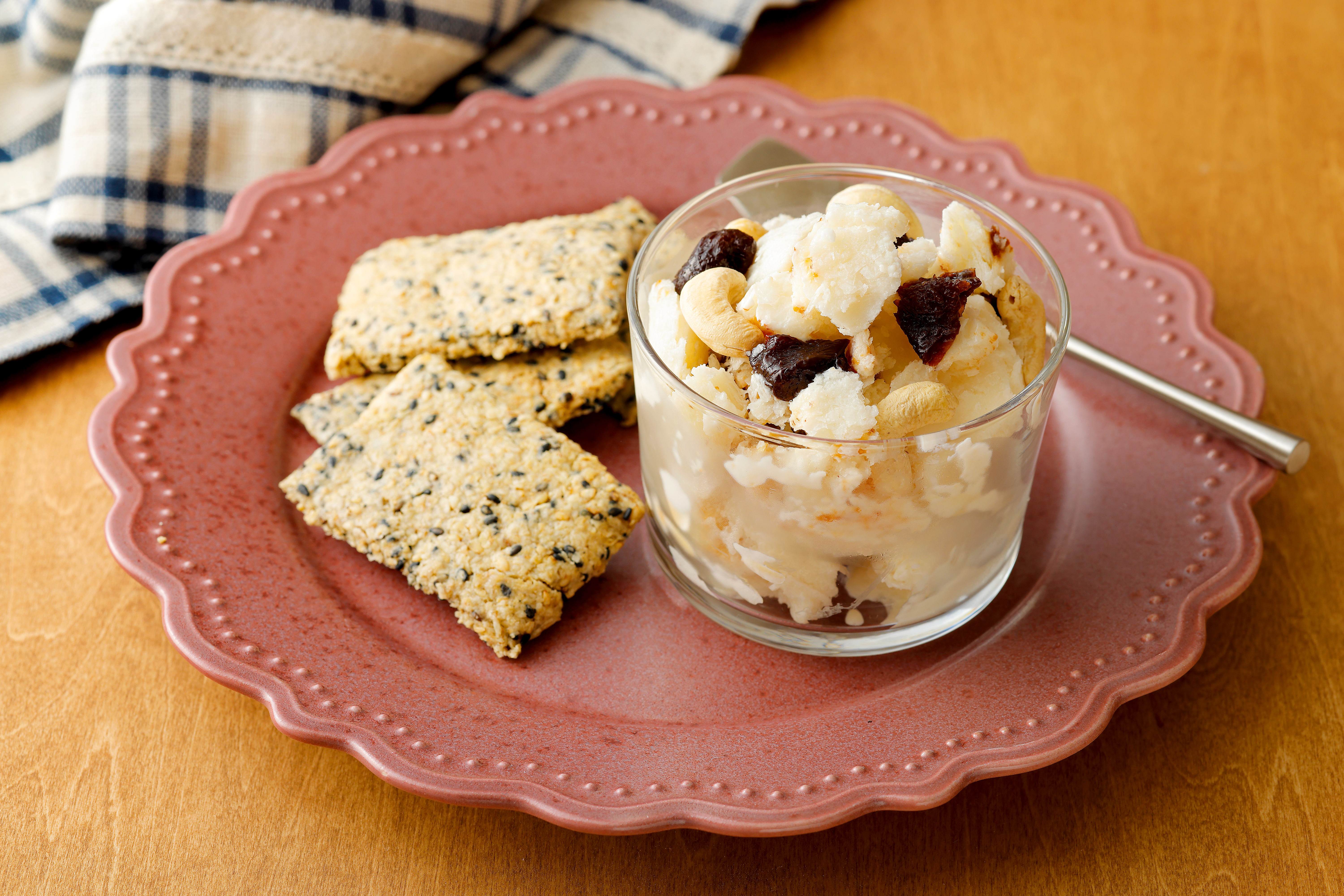おうちでできるタンサ活レシピ:「プルーンとナッツのフローズンヨーグルト&オートミールチーズクラッカー」