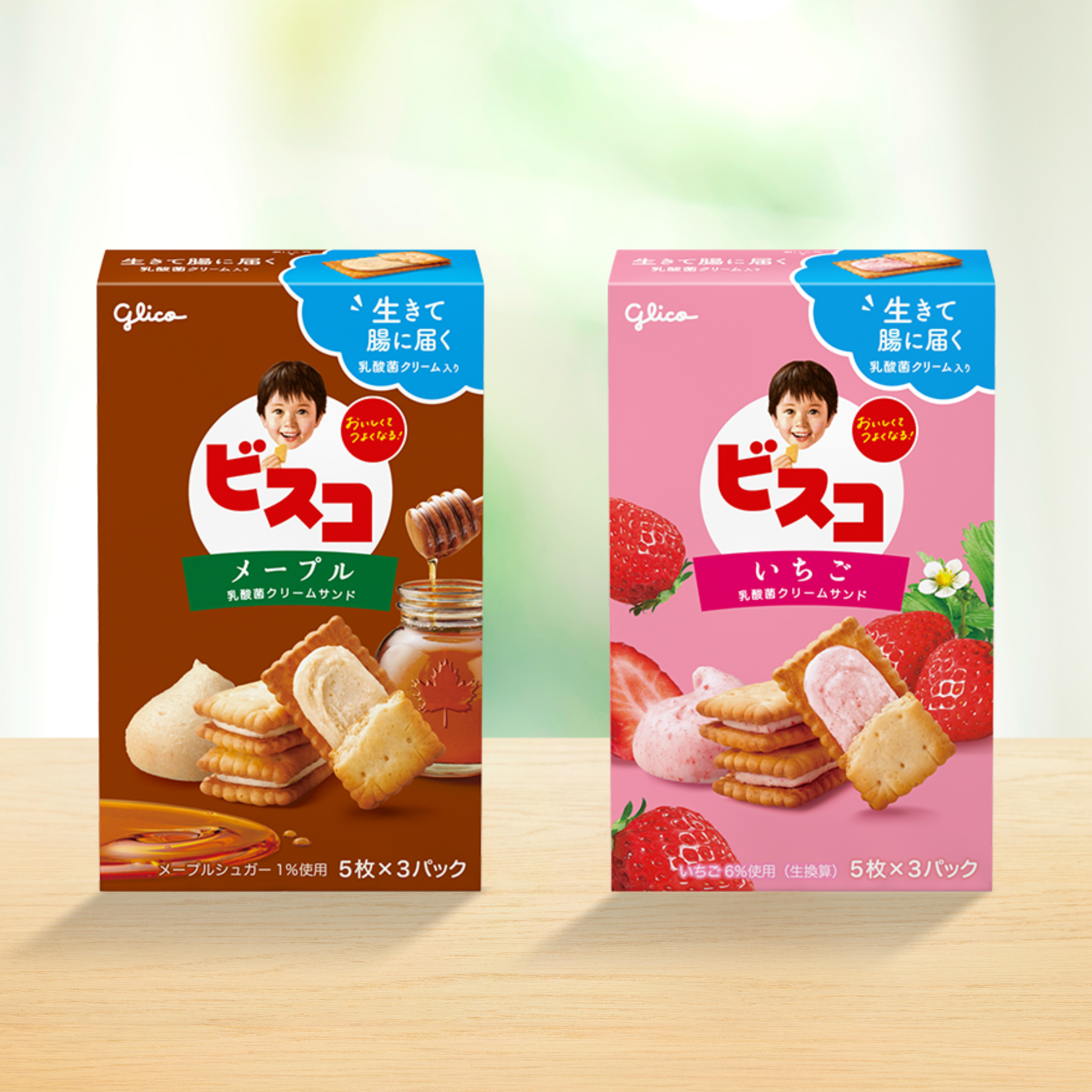 「ビスコ<メープル><いちご>」8月8日(火)より全国発売