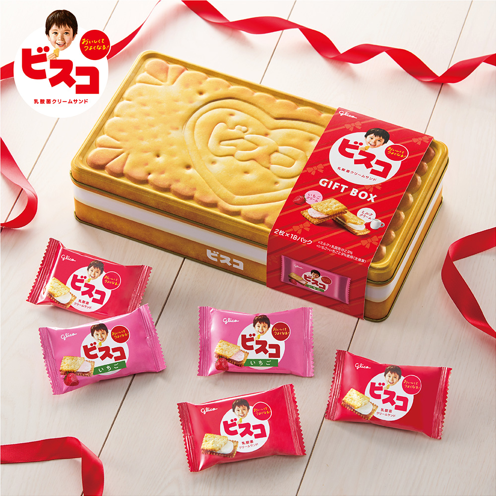 敬老の日には、ビスコ型の可愛い缶「ビスコGIFTBOX」を贈って、家族が集う楽しい1日に!