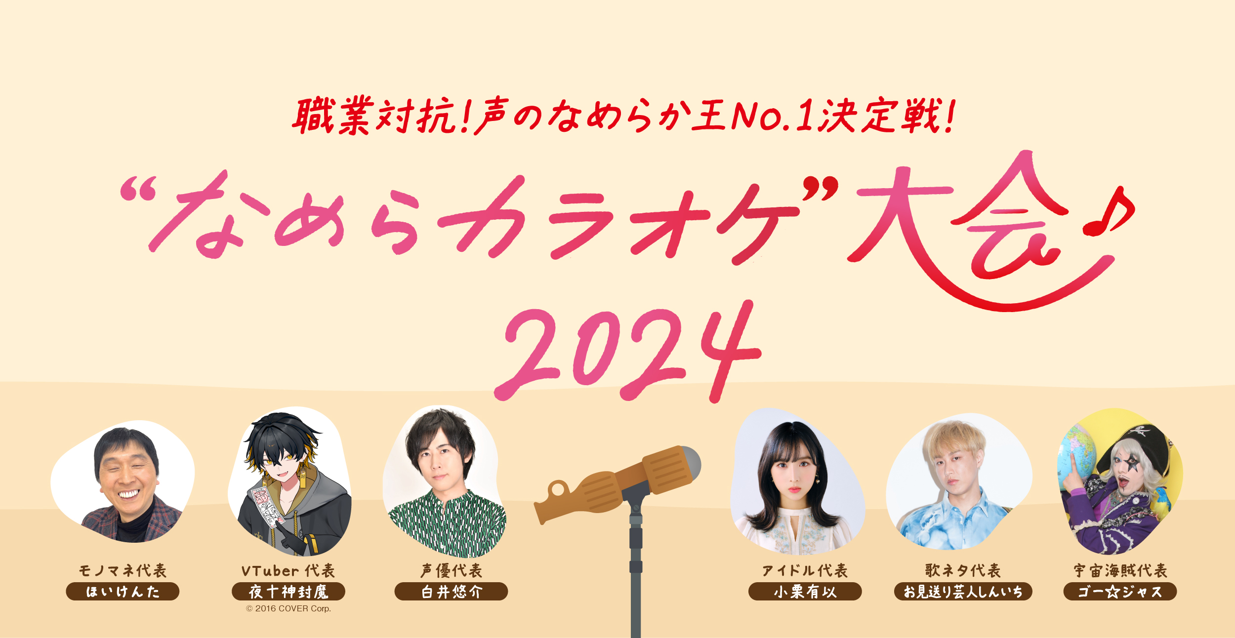 江崎グリコ株式会社の「パピコ」ブランドは、2024年8月5日(月)、今年の「パピコの日」に、声のなめらか王No.1を決める「パピコ なめらカラオケ大会2024」をX Liveにて開催します。今大会では、アイドル、声優、VTuber、芸人など、「声」を職業とする各界の代表者として、モノマネ芸人のほいけんたさん、VTuberの夜十神封魔さん、声優の白井悠介さん、アイドルのAKB48小栗有以さん、歌ネタ芸人のお見送り芸人しんいちさん、宇宙海賊のゴー☆ジャスさんが出場し、課題曲「なめらか方程式」を歌唱。「なめらかな歌声」を競い合います。