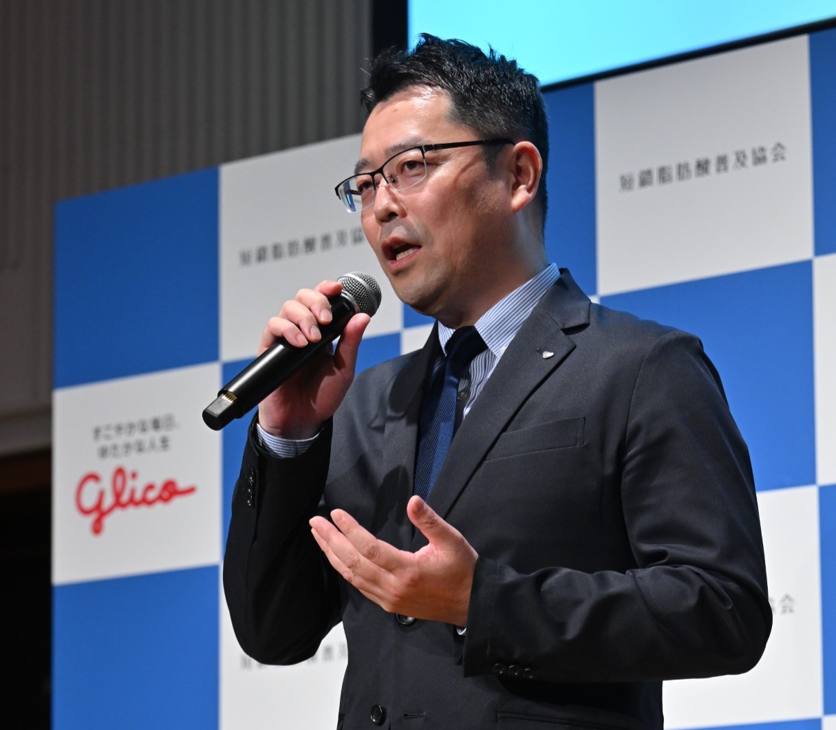 江崎グリコ株式会社は、腸からの健康寿命の延伸を目指し、2022年より「タンサ(短鎖)脂肪酸」に注目した社内横断の「タンサ脂肪酸プロジェクト」を立ち上げ、これまで「タンサ脂肪酸」と「ビフィズス菌」に関する研究発表や、社外と連携した啓発活動を行ってきました。その活動の一環として、「一般社団法人 短鎖脂肪酸普及協会」に正会員として加入するとともに、11月27日(水)に開かれた同協会主催の「立ち上げ発表会」にて、所信表明を行いました。