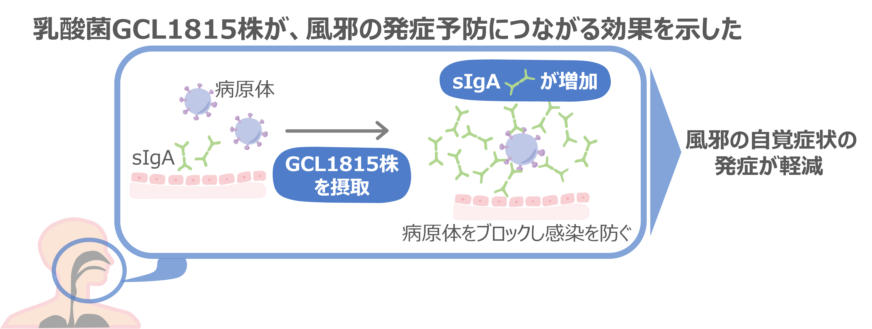 Glico独自開発の乳酸菌Lactobacillus helveticus GCL1815株が風邪の自覚症状を抑え、分泌型免疫グロブリンA(sIgA)の産生を促進することをヒト試験で実証