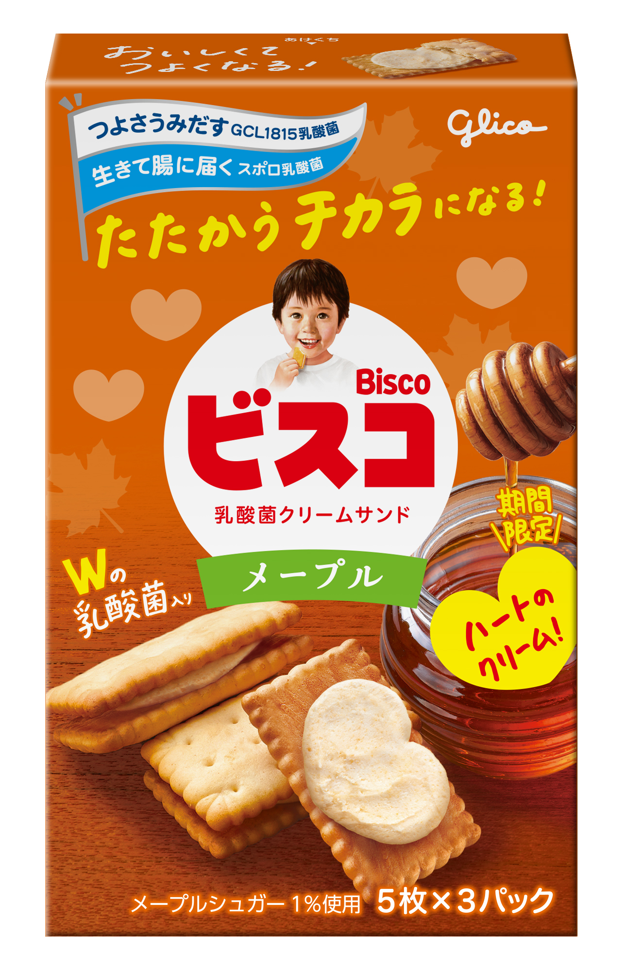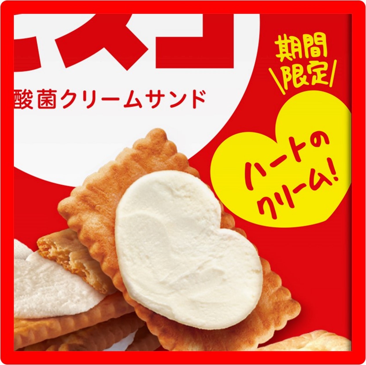 ※取り扱い店舗の在庫状況に応じて順次、ハート型のクリームの「ビスコ」へ切り替わります。在庫がなくなり次第終了とさせていただきます。パッケージに「ハートのクリーム!」と記載のある商品が対象となりますので、パッケージをご確認ください。