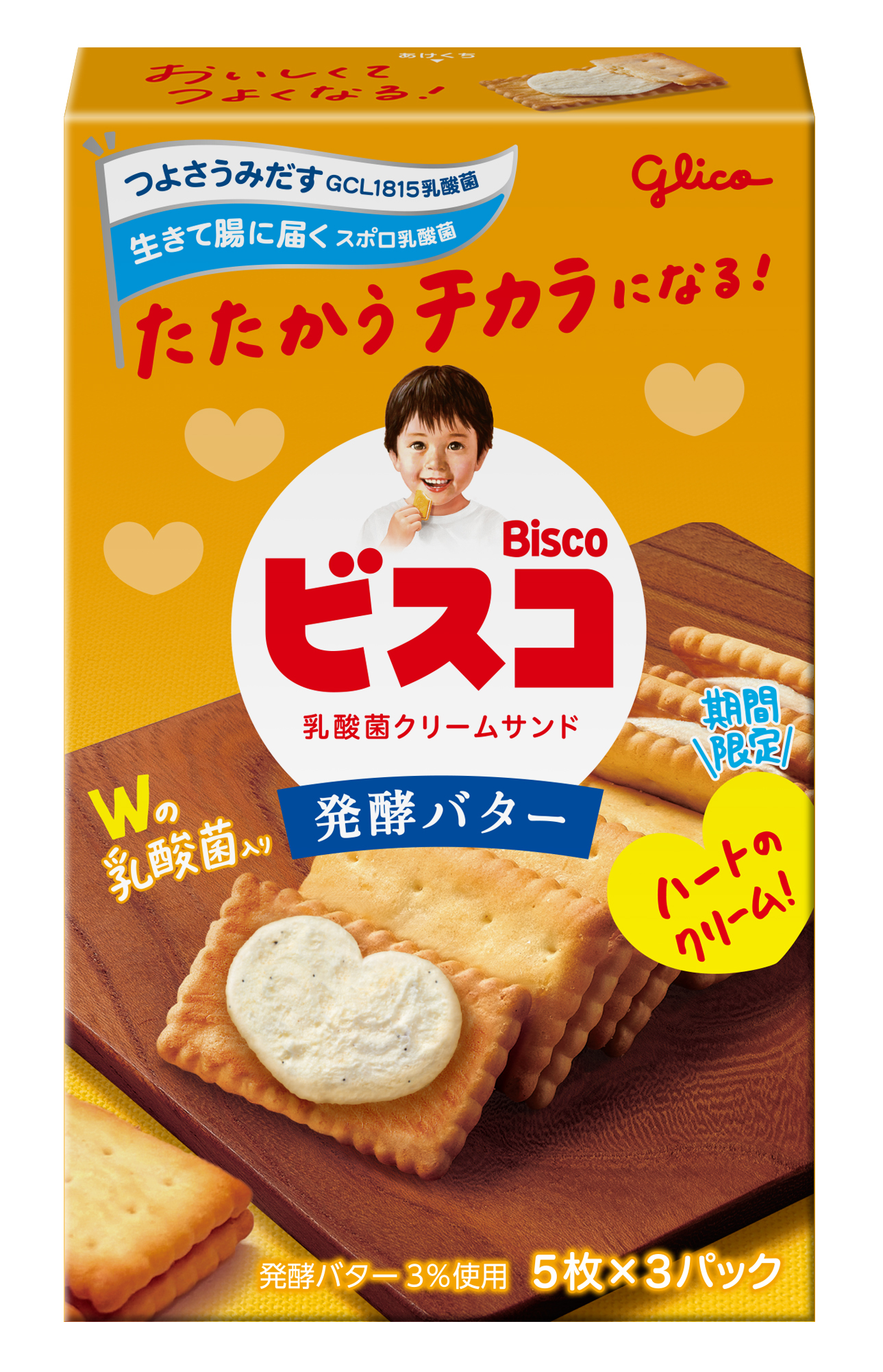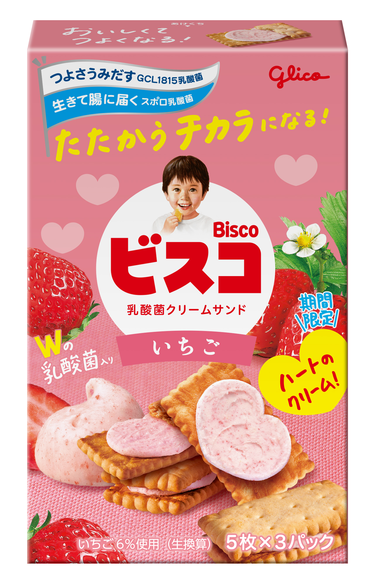 江崎グリコ株式会社は、今年4月に自社で保有する約1万種の菌株の中から独自研究によって選び抜いた「つよさうみだすGCL1815乳酸菌」をクリームに加え、新しくなった「ビスコ」から、クリームの形がハート型になった「ビスコ」を、2025年7月22日(火)より全国にて限定で発売します(※)。