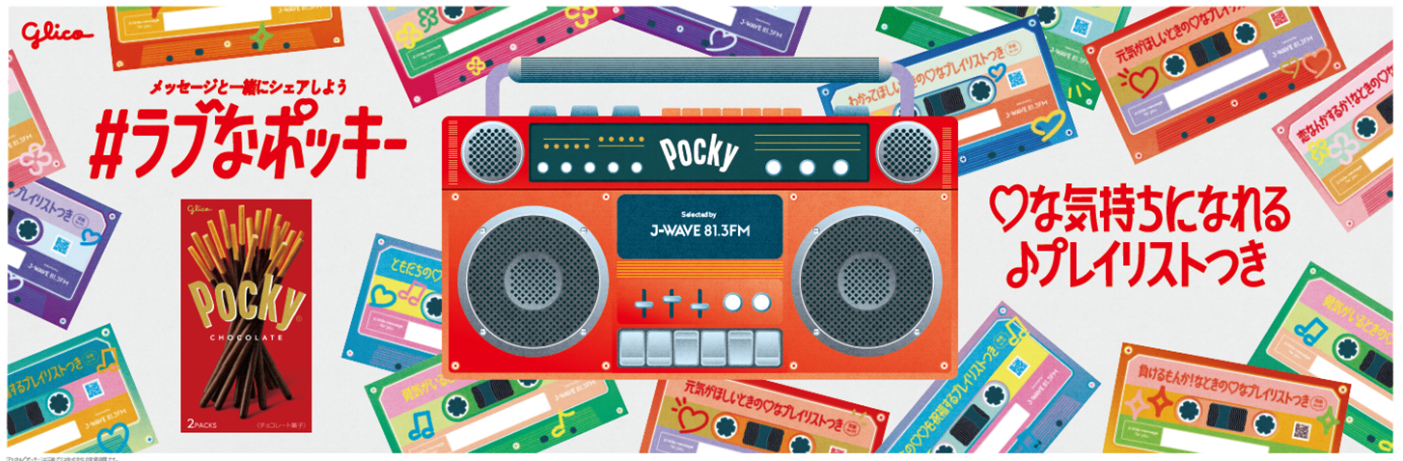 江崎グリコ株式会社は、バレンタインシーズンにむけて「メッセージと一緒にシェアしよう #ラブなポッキー」キャンペーンを、2026年1月13日(火)より開始します。本キャンペーンでは「Share happiness! 分かち合うって、いいね!」をスローガンに掲げるポッキーから、バレンタインシーズンにシェアするのにぴったりな音楽プレイリストをプレゼント。プレイリストはラジオ局J-WAVE(81.3FM)のディレクターが、6つのラブをテーマにセレクトしており、全12種類(6テーマ×邦楽セレクト・洋楽セレクトの2種類)が公開されます。カセットテープのデザインが裏面に施された限定パッケージのポッキーを購入すると、Spotifyより聴くことができます。