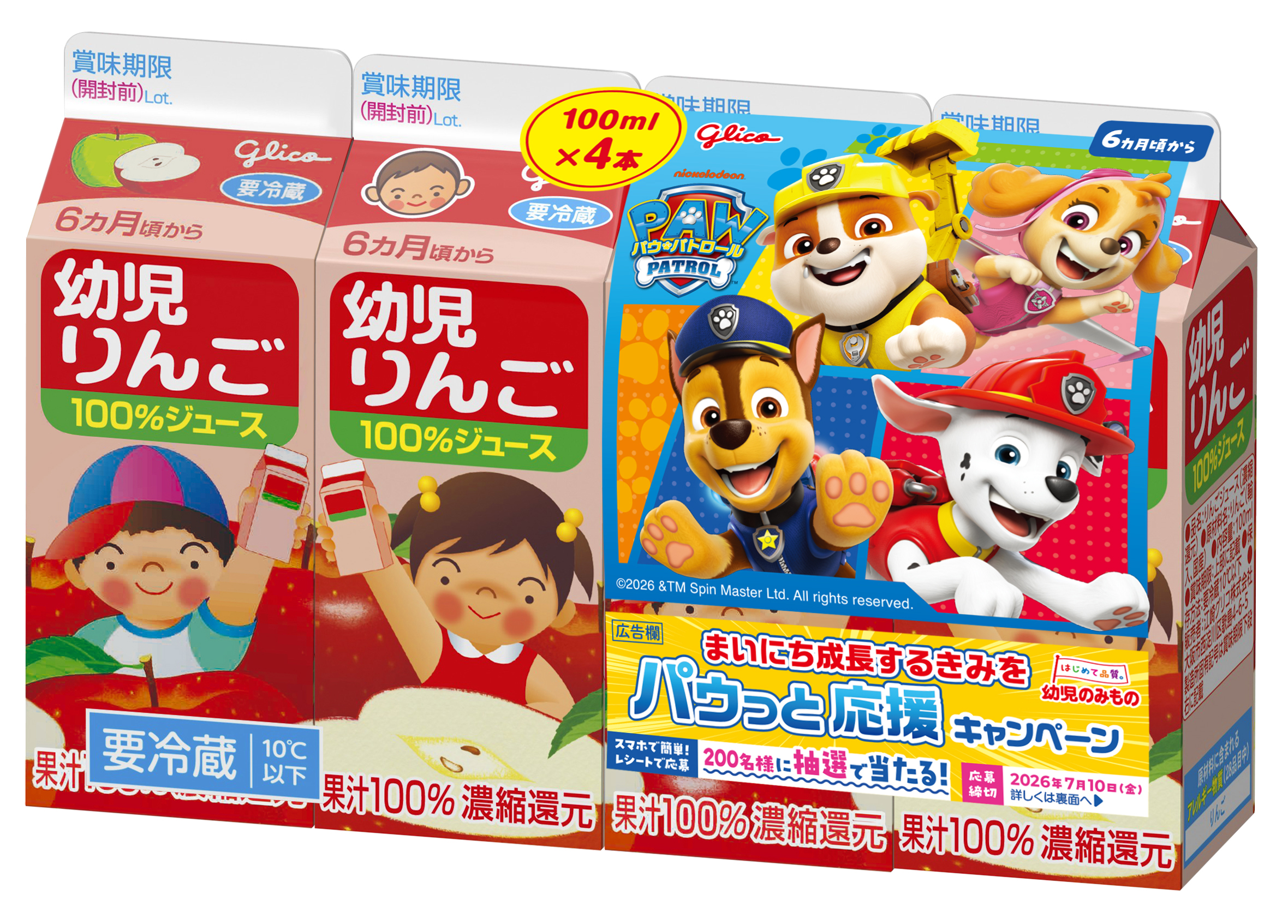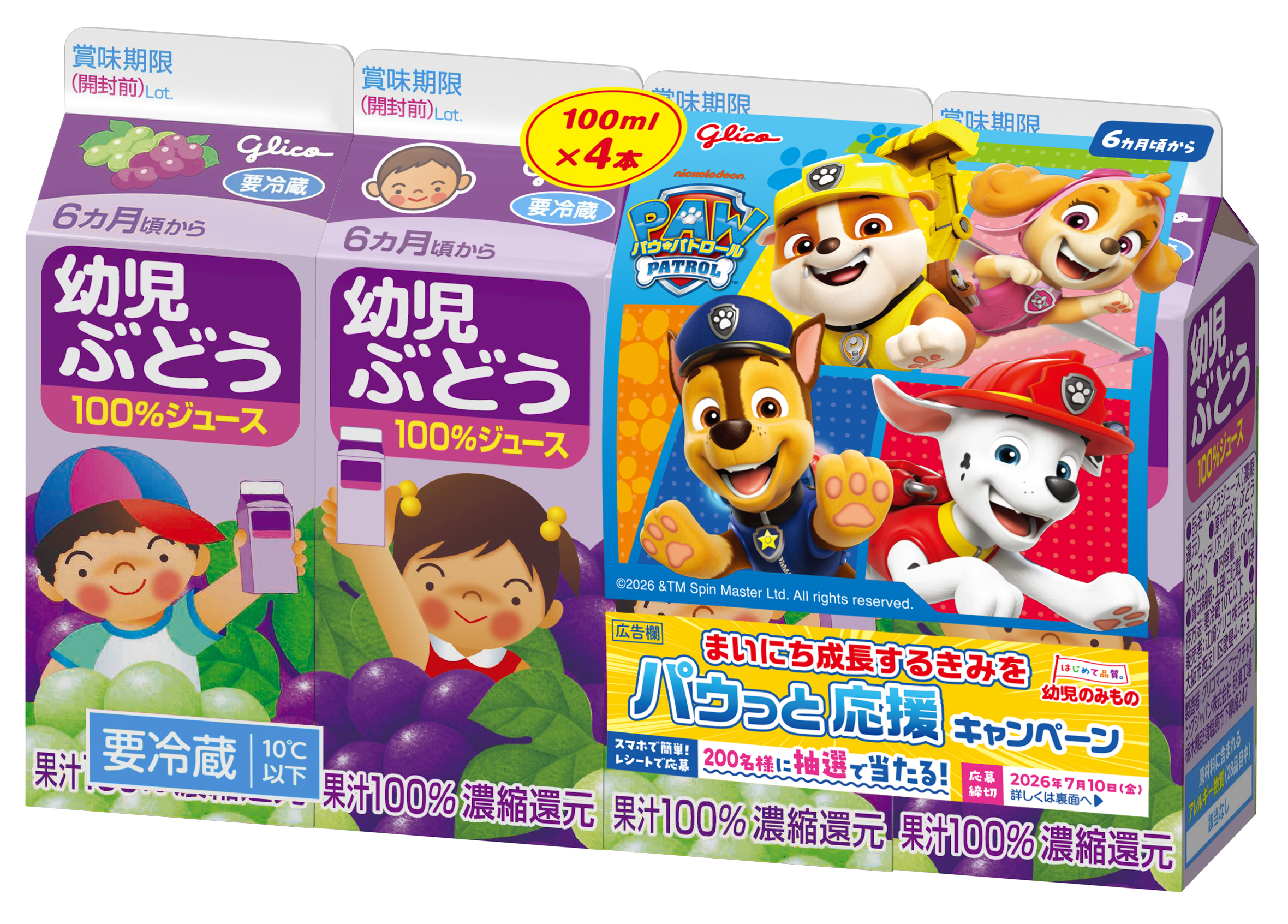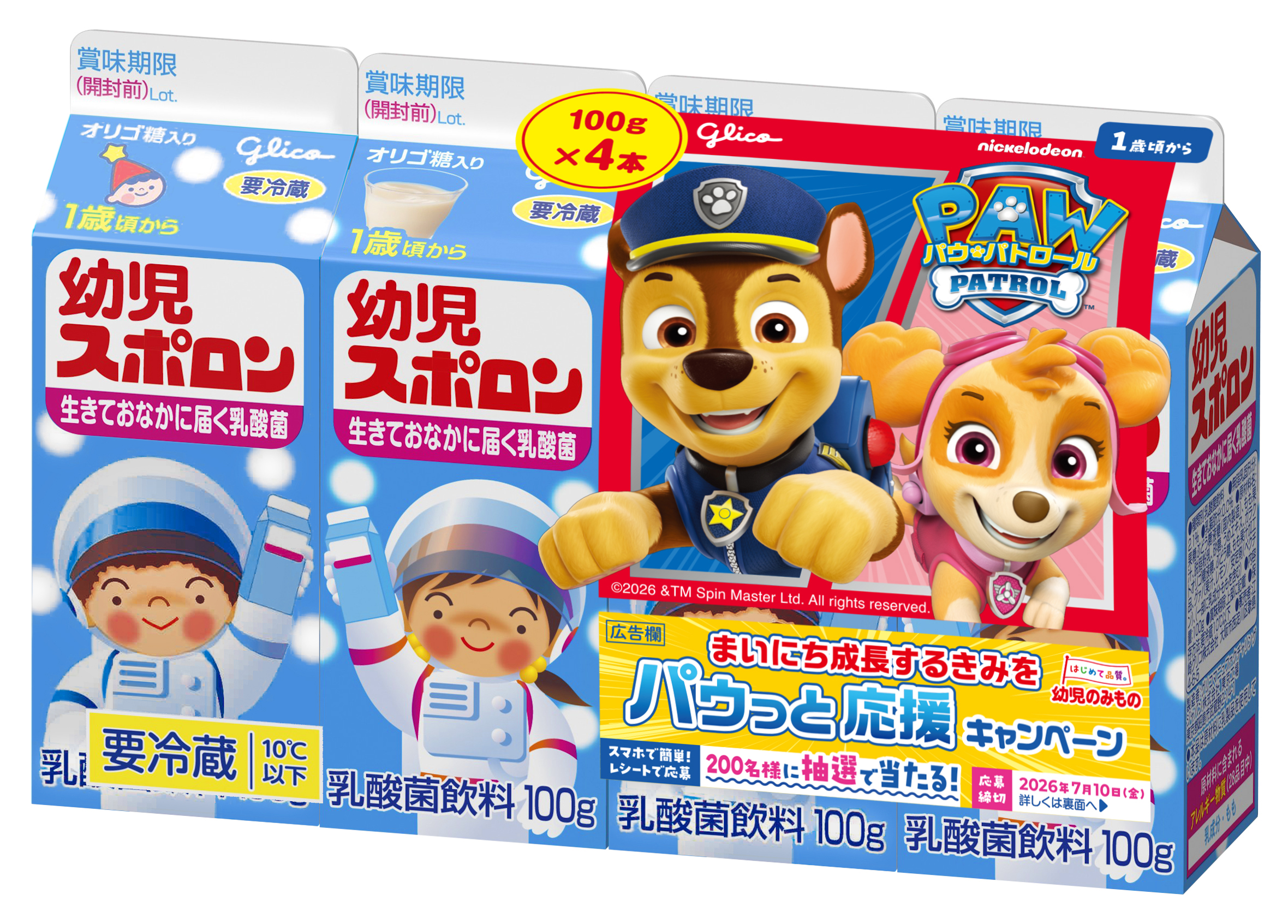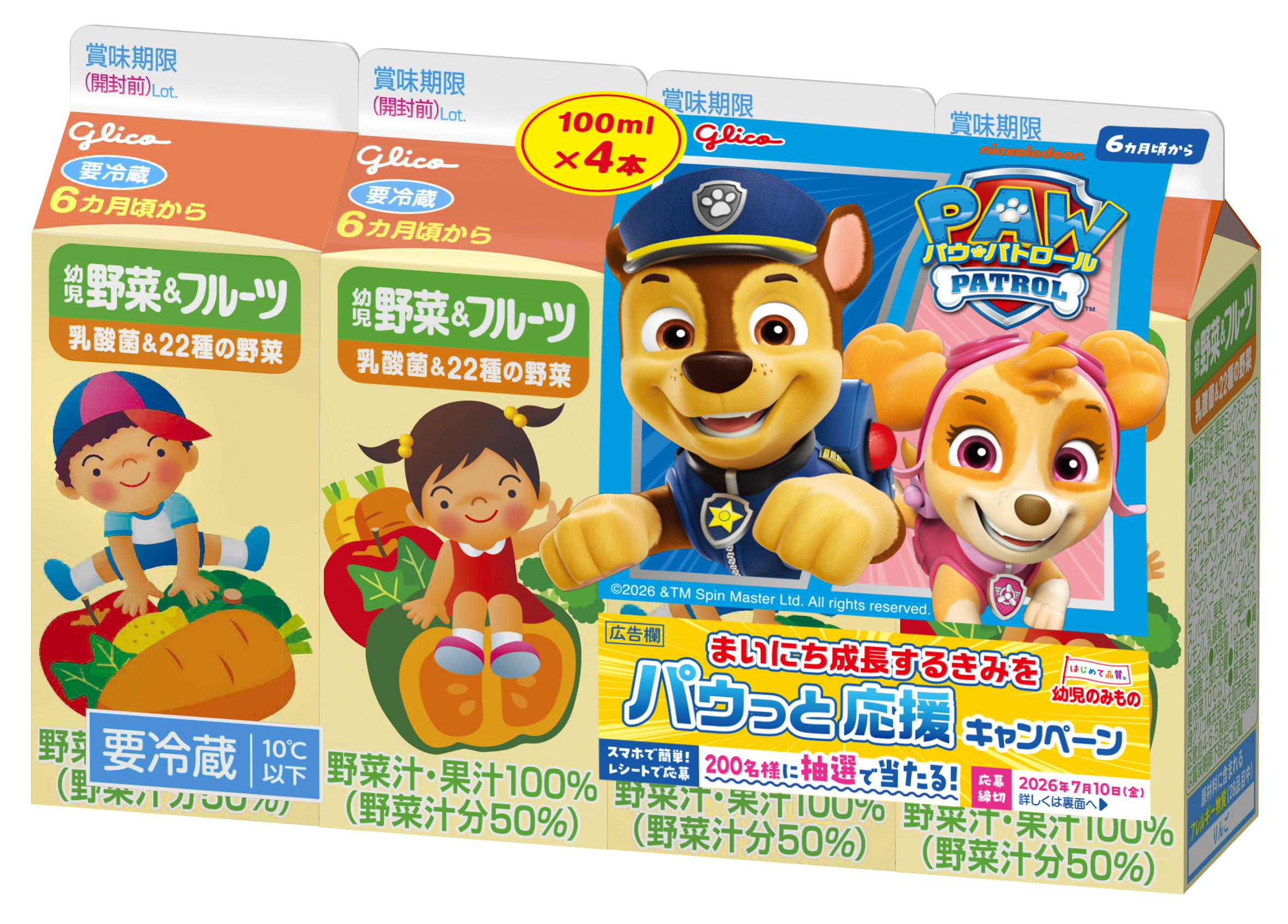 江崎グリコ株式会社は、「幼児のみもの」が「パウ・パトロール」と初めてコラボレーションした、「まいにち成長するきみを パウっと応援キャンペーン」を2026年4月13日(月)より開始します。