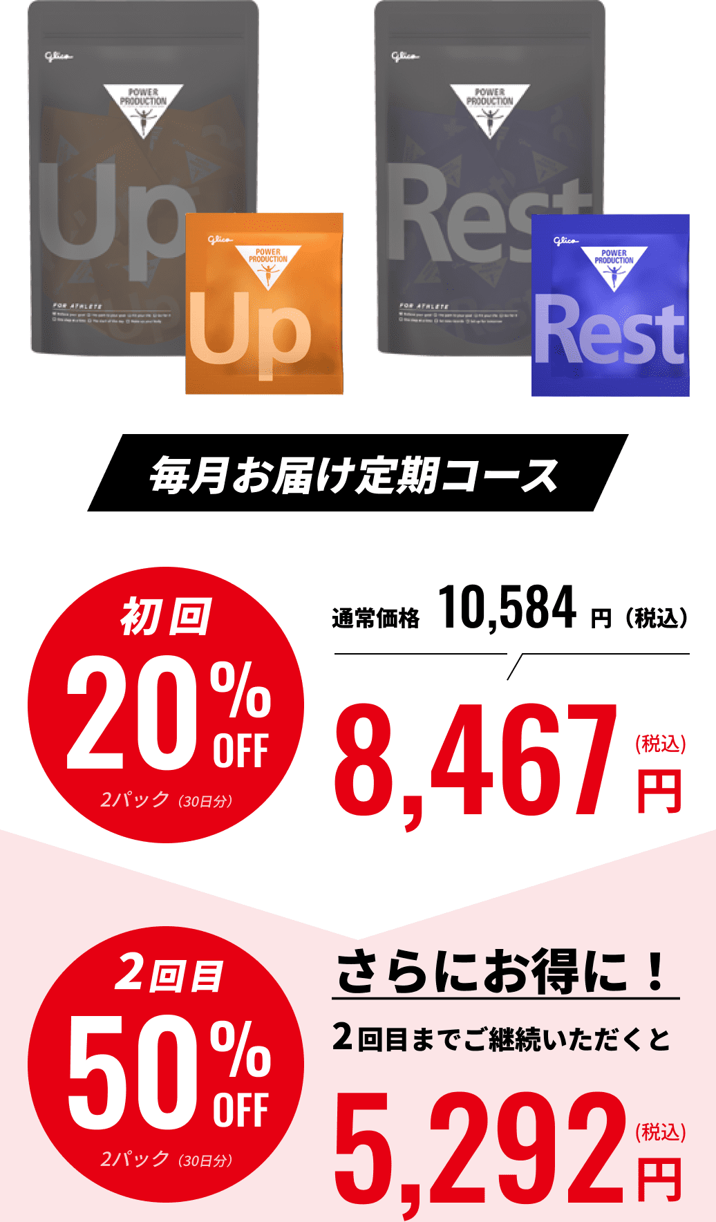 コンディションチェック後におすすめサプリを初回20%OFF、2回目50%OFFでお届けいたします。