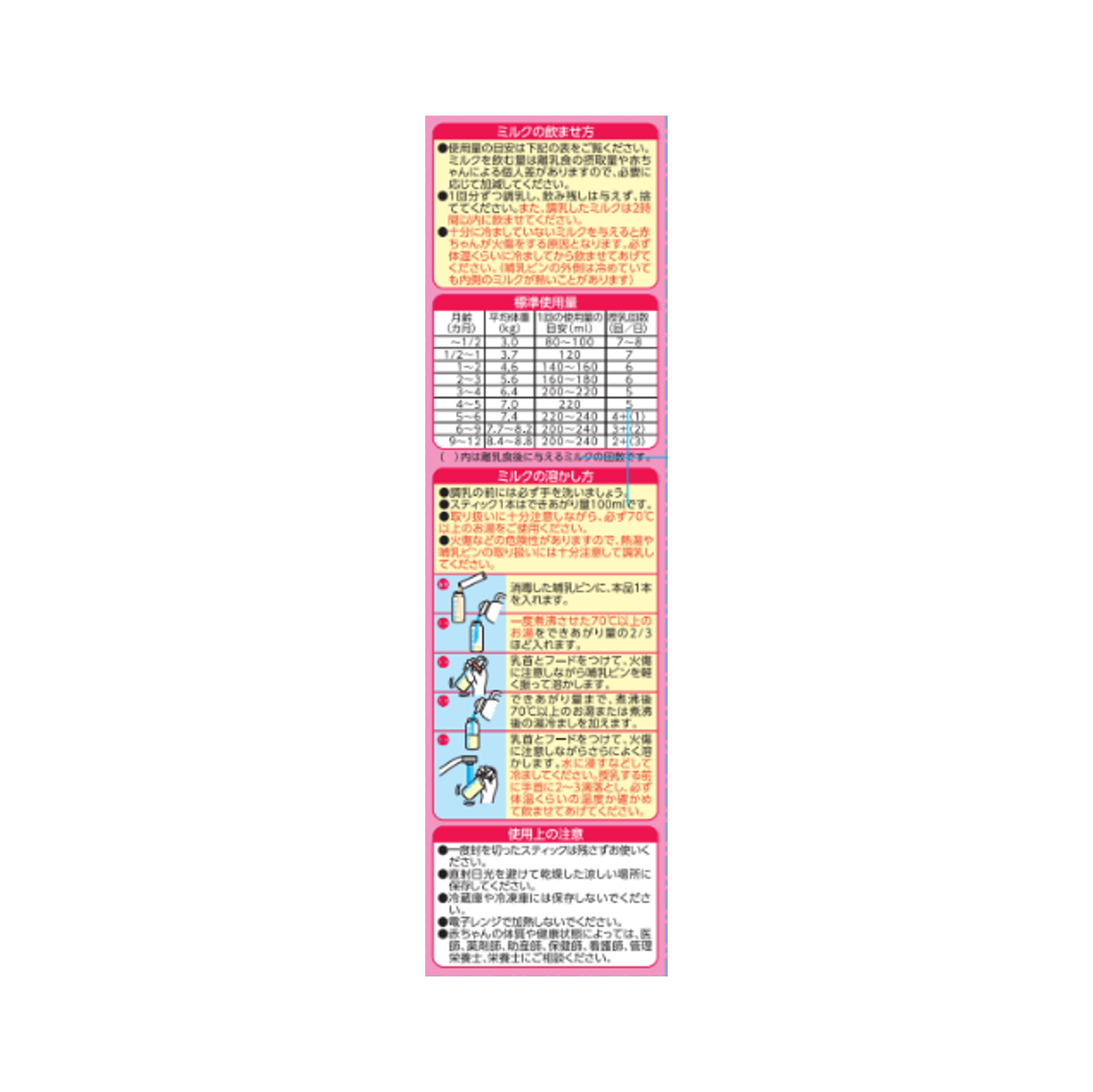 小さな体と心を想い、赤ちゃんに理想的な栄養である母乳に近づけたミルク。 愛をこめた品質を、赤ちゃんとお母さんお父さんへ。持ち運びにも便利なスティックタイプです。