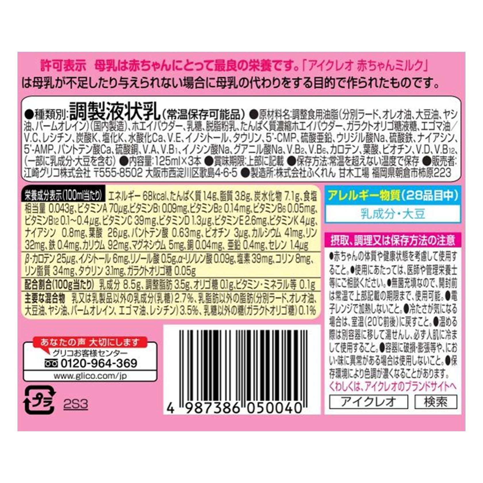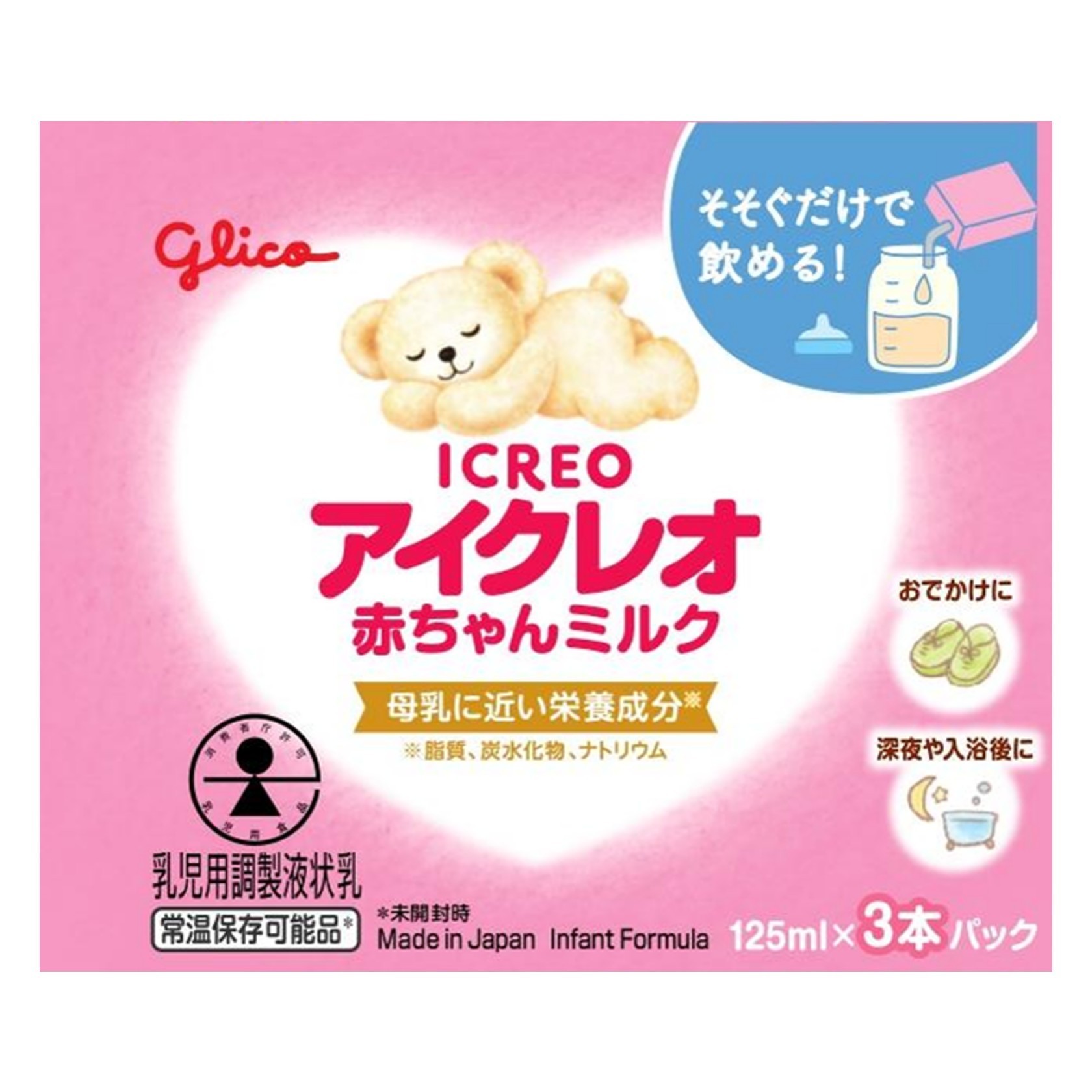 液体ミルクのアイクレオ 赤ちゃんミルクが便利な3本パックになりました。 小さな体と心を想い、赤ちゃんに理想的な栄養である母乳に近づけました。 「無菌パック製法」で無菌化された状態でつめるので、常温での長期保存が可能です。いざという時の備えにも安心です。