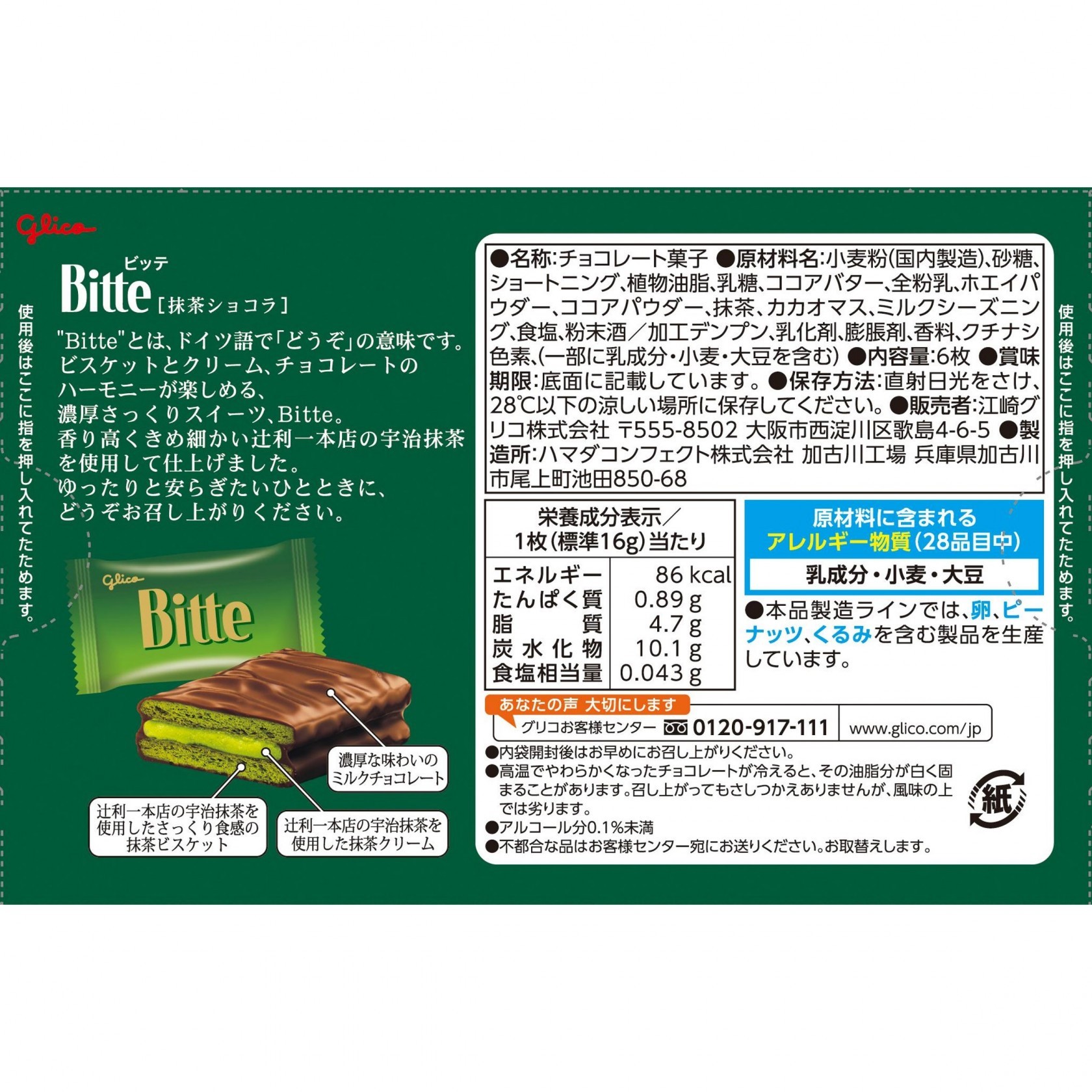 小麦粉(国内製造)、砂糖、ショートニング、植物油脂、乳糖、ココアバター、全粉乳、ホエイパウダー、ココアパウダー、抹茶、カカオマス、ミルクシーズニング、食塩、粉末酒/加工デンプン、乳化剤、膨脹剤、香料、クチナシ色素、(一部に乳成分・小麦・大豆を含む)