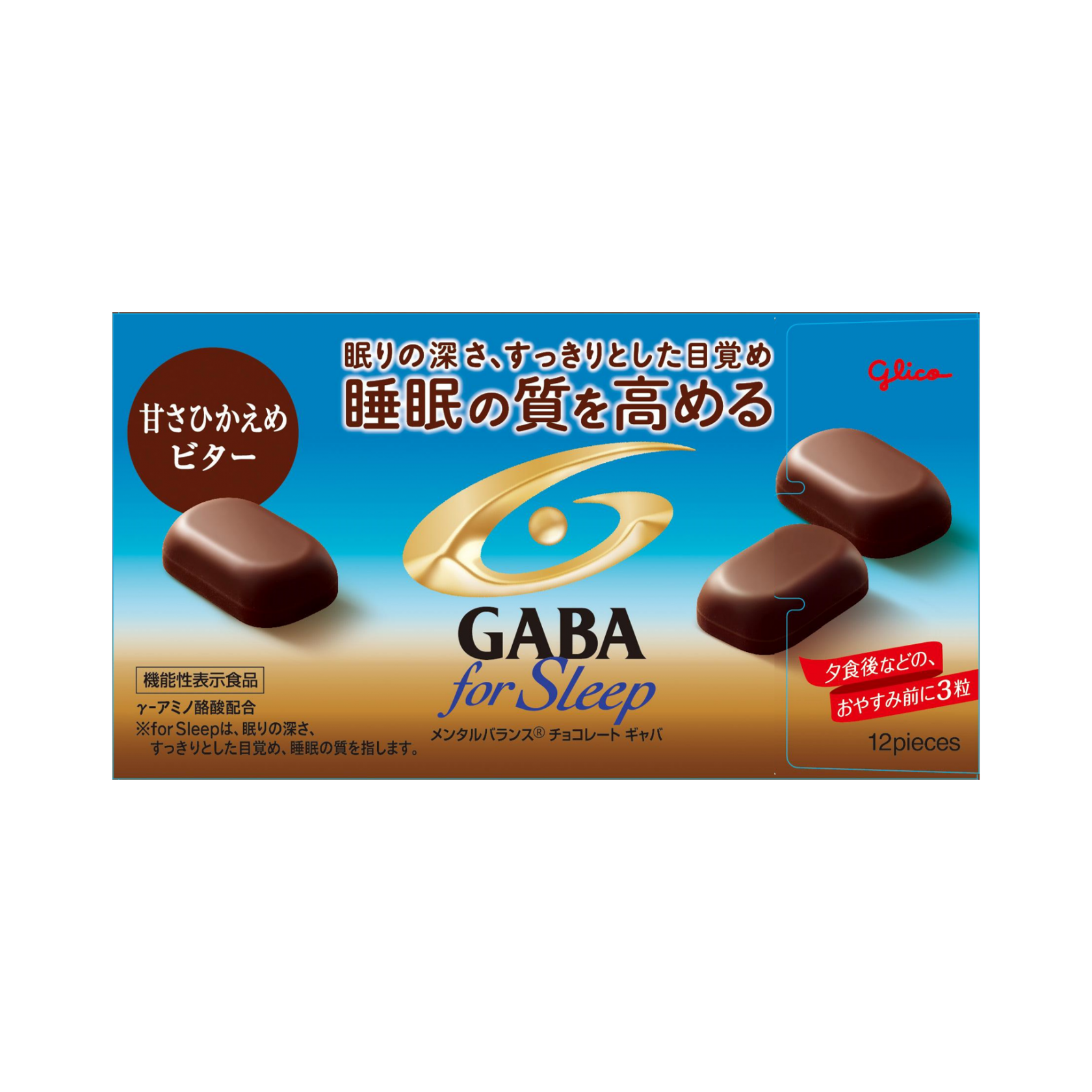 睡眠の質(眠りの深さ、すっきりとした目覚め)を高める機能が報告されているGABA(γ-アミノ酪酸)を3粒に100㎎配合しています。おやすみ前にぴったりの甘さひかえめのビター味です。