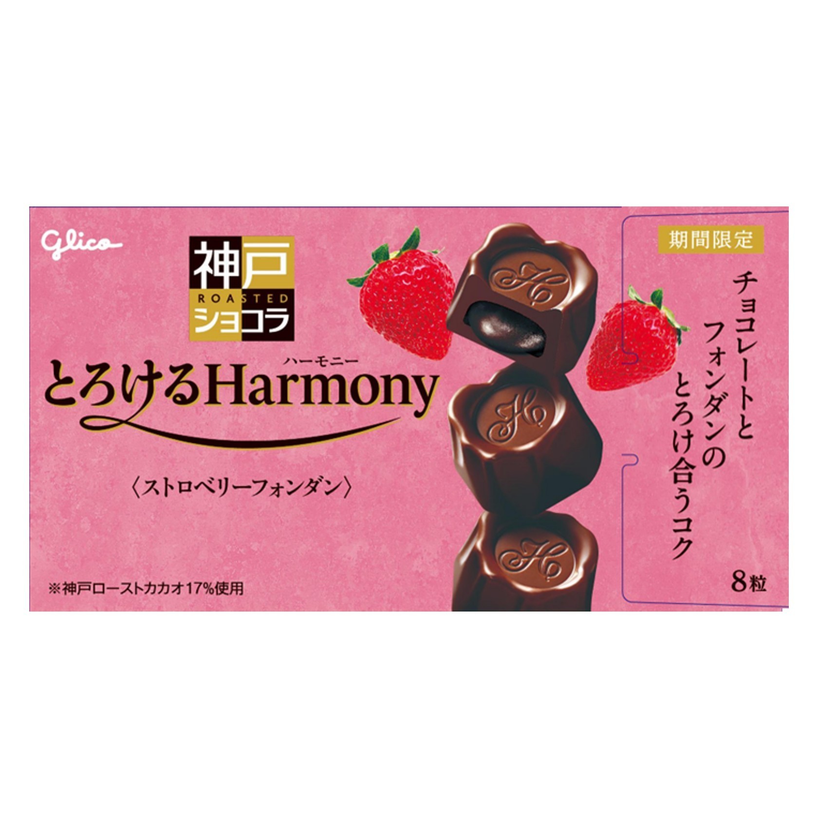 グリコ神戸工場でローストしたカカオをふんだんに使用し、ソースとカカオマスを独自のブレンドで混ぜ合わせ、ガナッシュ食感に仕上げたセンターフィリング ”フォンダン”を大粒チョコで包みました。ソースの口いっぱいに広がる甘さと、カカオの持つ苦み・キレが組み合わさり、大人な味わいのボンボンショコラに仕上がっています。ストロベリー味です。