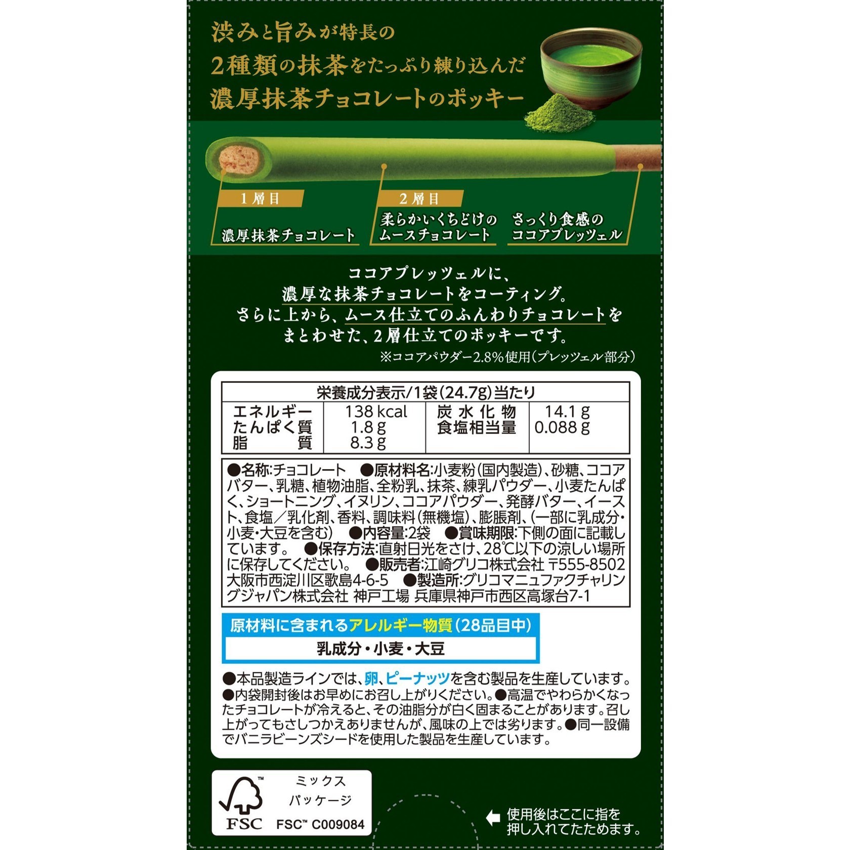 2種の抹茶をたっぷりと使用し、渋みと旨みを感じる奥深い味わいです。外側にまとわせたエアレーションチョコレートにより、抹茶の奥深く濃厚な味わいを柔らかいくちどけで楽しめるポッキーです。