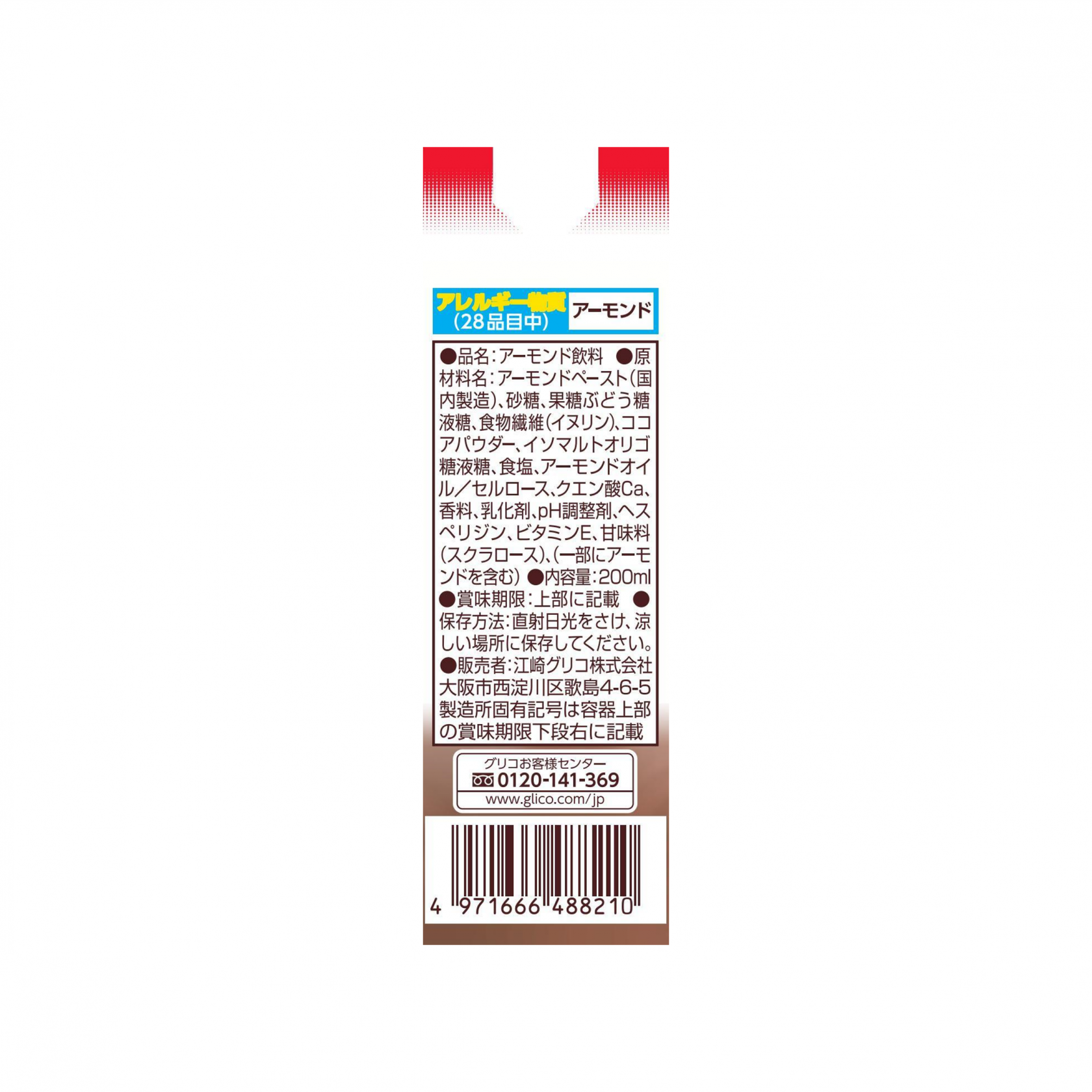 アーモンドペースト(国内製造)、砂糖、果糖ぶどう糖液糖、食物繊維(イヌリン)、ココアパウダー、イソマルトオリゴ糖液糖、食塩、アーモンドオイル/セルロース、クエン酸Ca、香料、乳化剤、pH調整剤、ヘスペリジン、ビタミンE、甘味料(スクラロース)、(一部にアーモンドを含む)