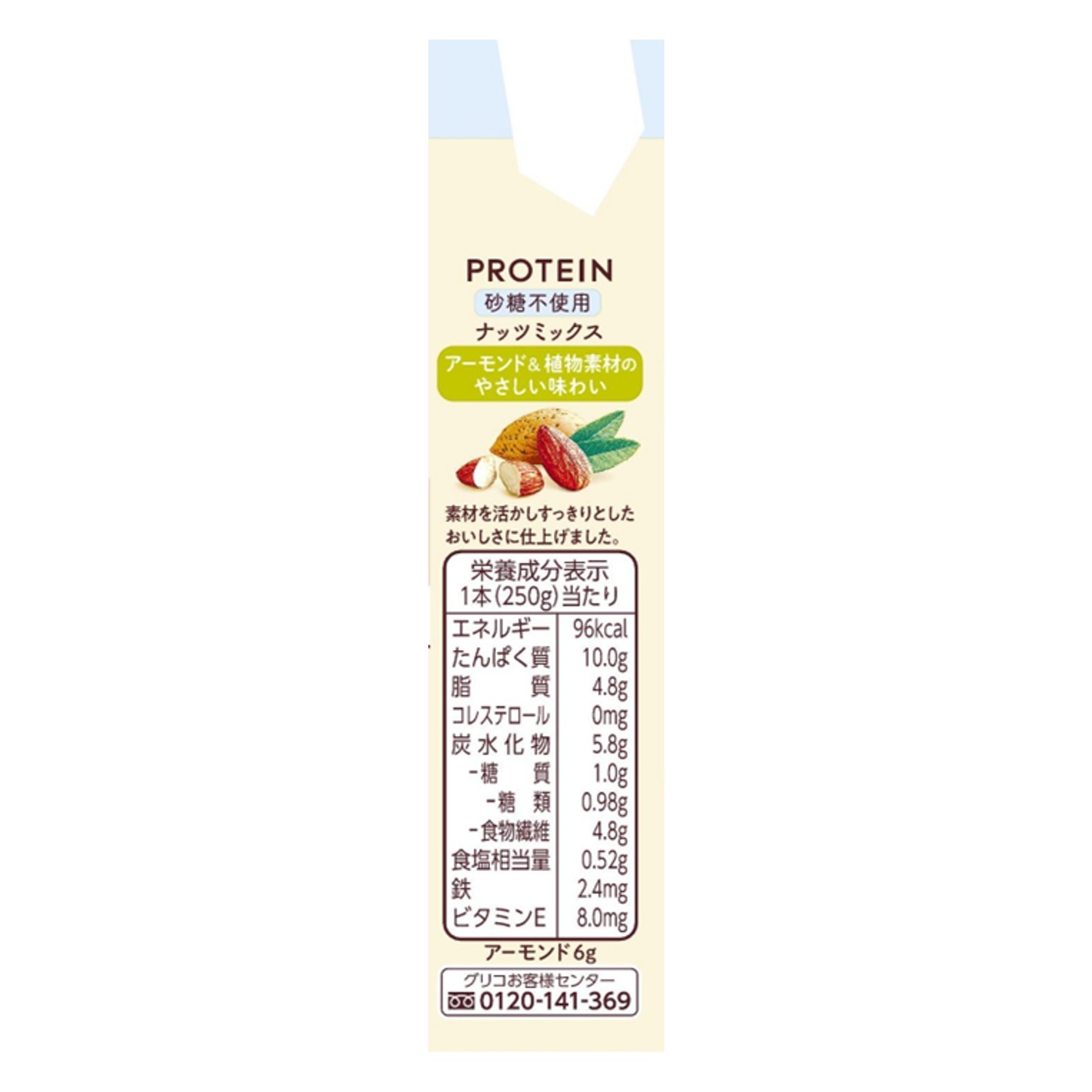 4種のナッツ(アーモンド、くるみ、ヘーゼルナッツ、カシューナッツ)を合わせた香ばしい味わいの植物性プロテイン入りアーモンドミルクです。砂糖不使用なので、すっきりした味わいが楽しめます。