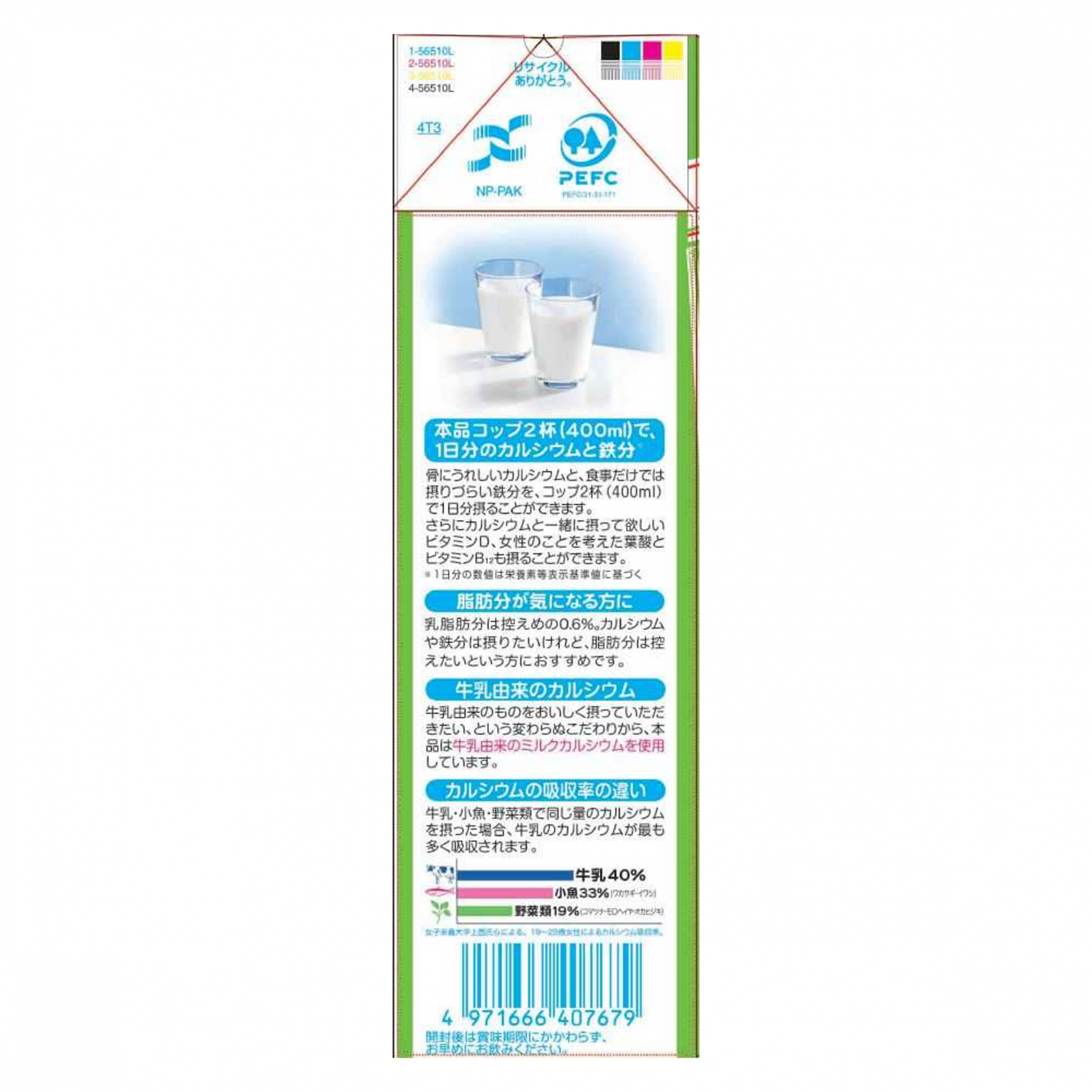コップ2杯(400ml)で1日分※のカルシウムと鉄分を摂ることができます。