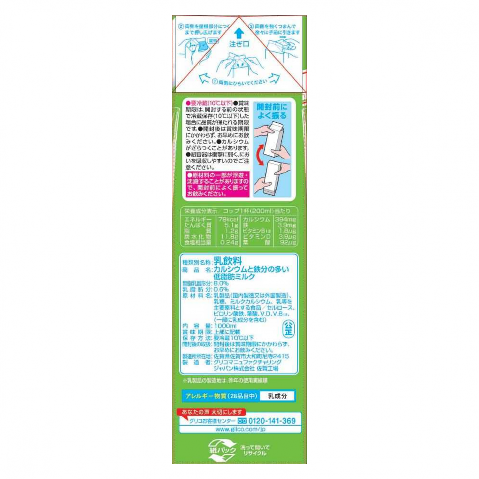 乳製品(国内製造又は外国製造)、乳糖、ミルクカルシウム、乳等を主要原料とする食品/セルロース、ピロリン酸鉄、葉酸、V.D、V.B12、(一部に乳成分を含む)