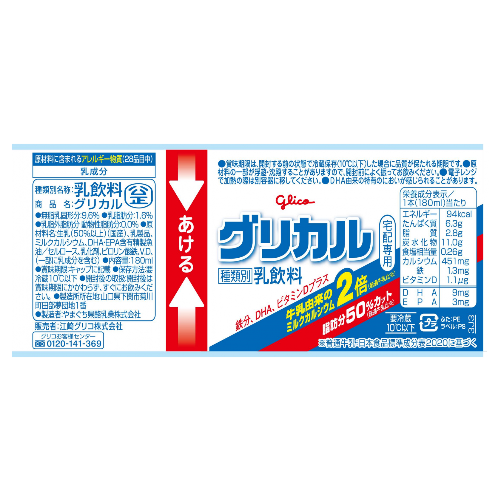 生乳(50%以上)(国産)、乳製品、ミルクカルシウム、DHA・EPA含有精製魚油/セルロース、乳化剤、ピロリン酸鉄、V.D、(一部に乳成分を含む)