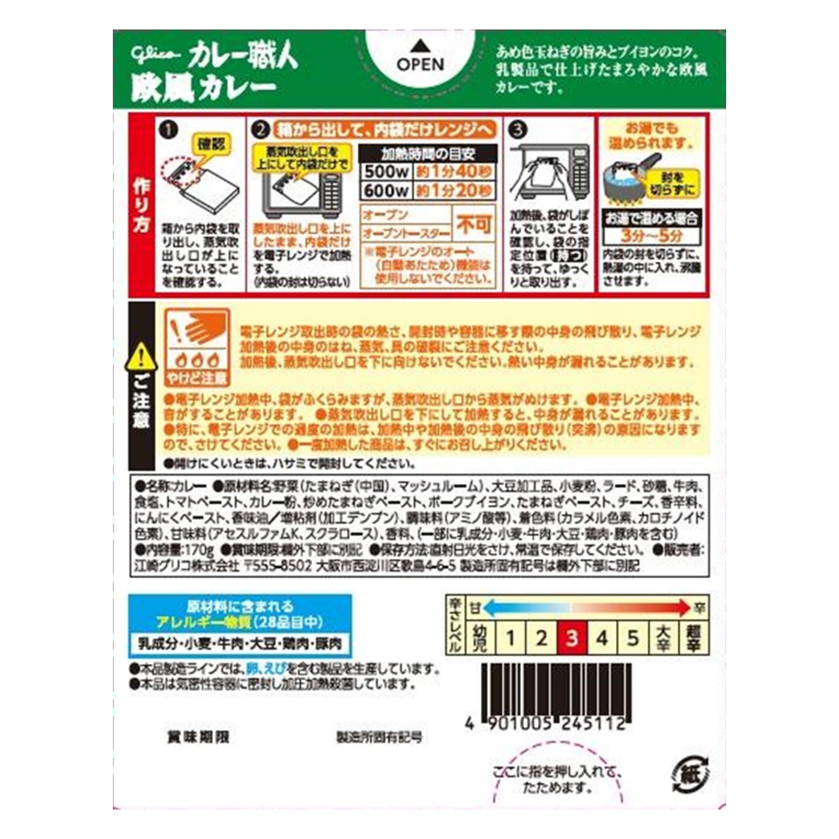 野菜(たまねぎ(中国)、マッシュルーム)、大豆加工品、小麦粉、ラード、砂糖、牛肉、食塩、トマトペースト、カレー粉、炒めたまねぎペースト、ポークブイヨン、たまねぎペースト、チーズ、香辛料、にんにくペースト、香味油/増粘剤(加工デンプン)、調味料(アミノ酸等)、着色料(カラメル色素、カロチノイド色素)、甘味料(アセスルファムK、スクラロース)、香料、(一部に乳成分・小麦・牛肉・大豆・鶏肉・豚肉を含む)