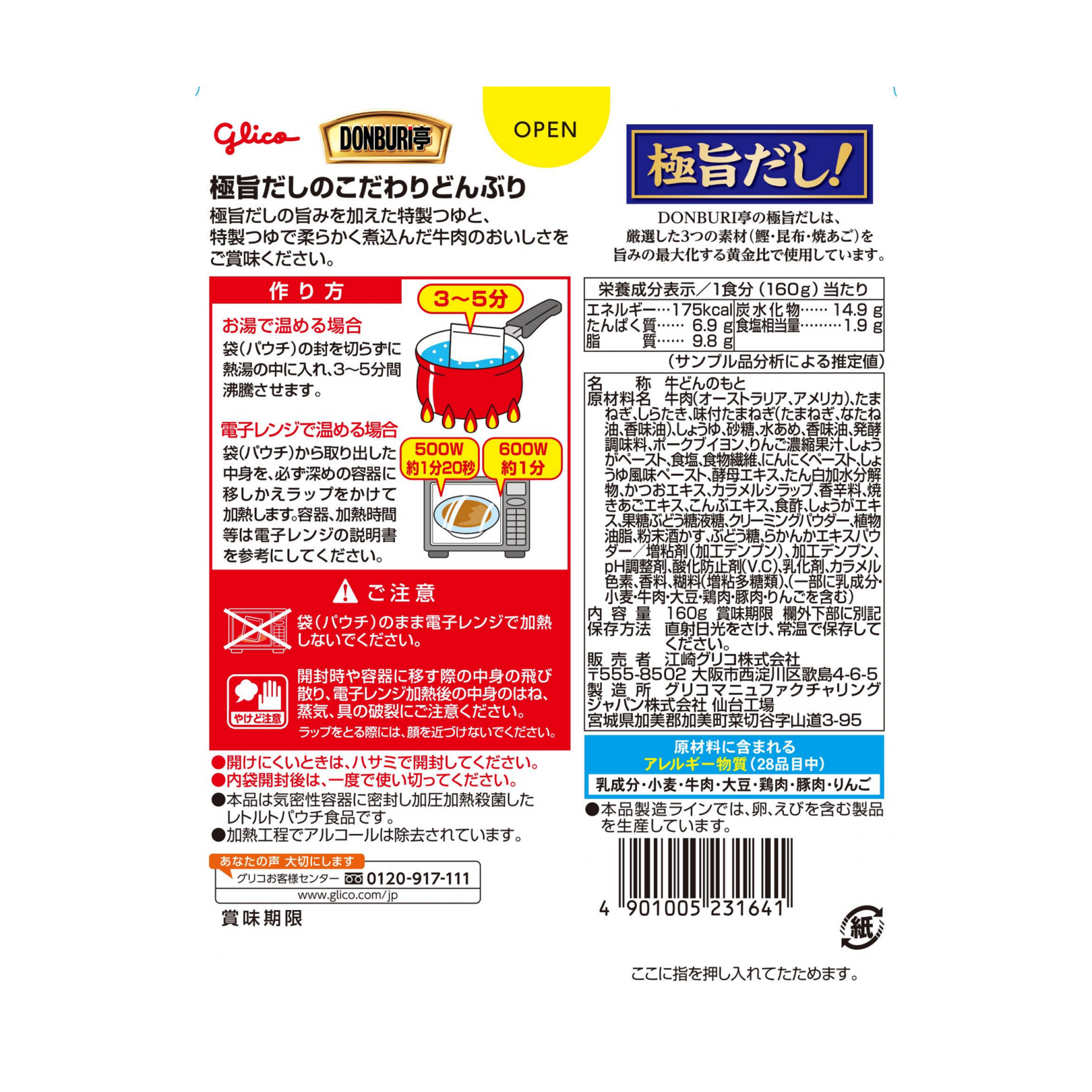 牛肉(オーストラリア、アメリカ)、たまねぎ、しらたき、味付たまねぎ(たまねぎ、なたね油、香味油)、しょうゆ、砂糖、水あめ、香味油、発酵調味料、ポークブイヨン、りんご濃縮果汁、しょうがペースト、食塩、食物繊維、にんにくペースト、しょうゆ風味ペースト、酵母エキス、たん白加水分解物、かつおエキス、カラメルシラップ、香辛料、焼きあごエキス、こんぶエキス、食酢、しょうがエキス、果糖ぶどう糖液糖、クリーミングパウダー、植物油脂、粉末酒かす、ぶどう糖、らかんかエキスパウダー/増粘剤(加工デンプン)、加工デンプン、pH調整剤、酸化防止剤(V.C)、乳化剤、カラメル色素、香料、糊料(増粘多糖類)、(一部に乳成分・小麦・牛肉・大豆・鶏肉・豚肉・りんごを含む)