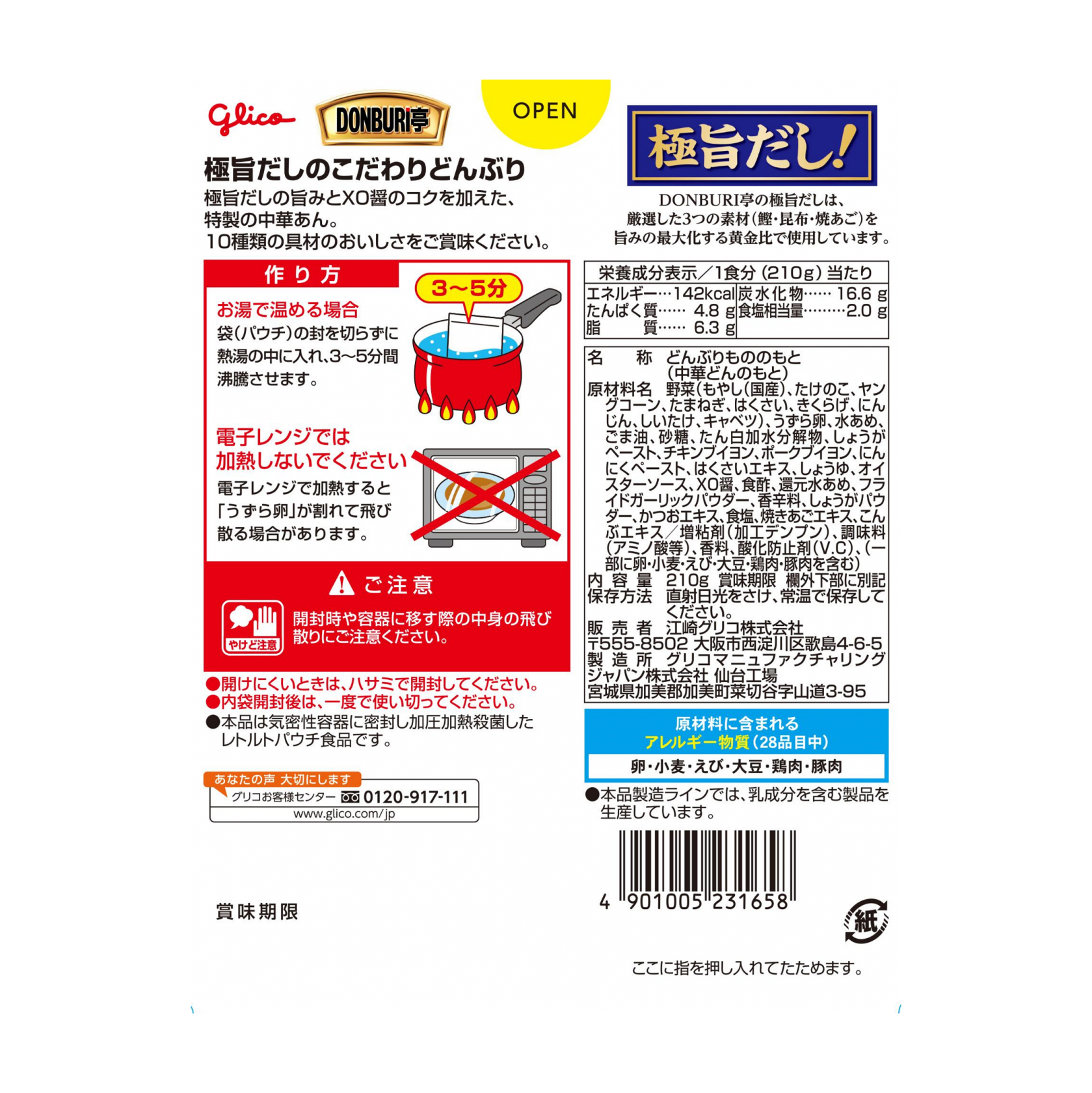 XO醤の深いコクと、すっきりとした後口が味わえるあんに仕上げました。10種類の具材のおいしさをご賞味ください。手軽に満足感のある食事ができるレトルト丼です。