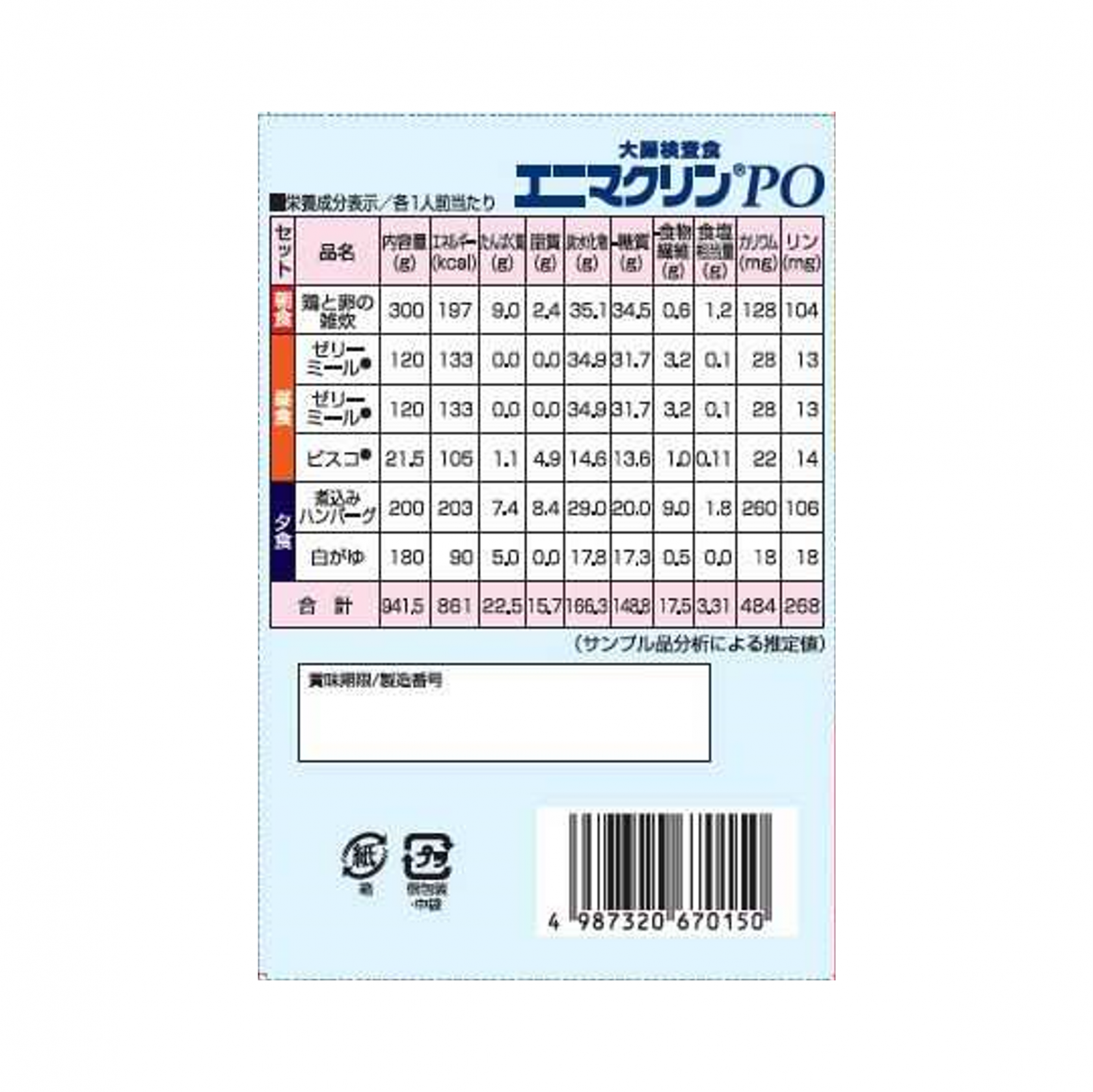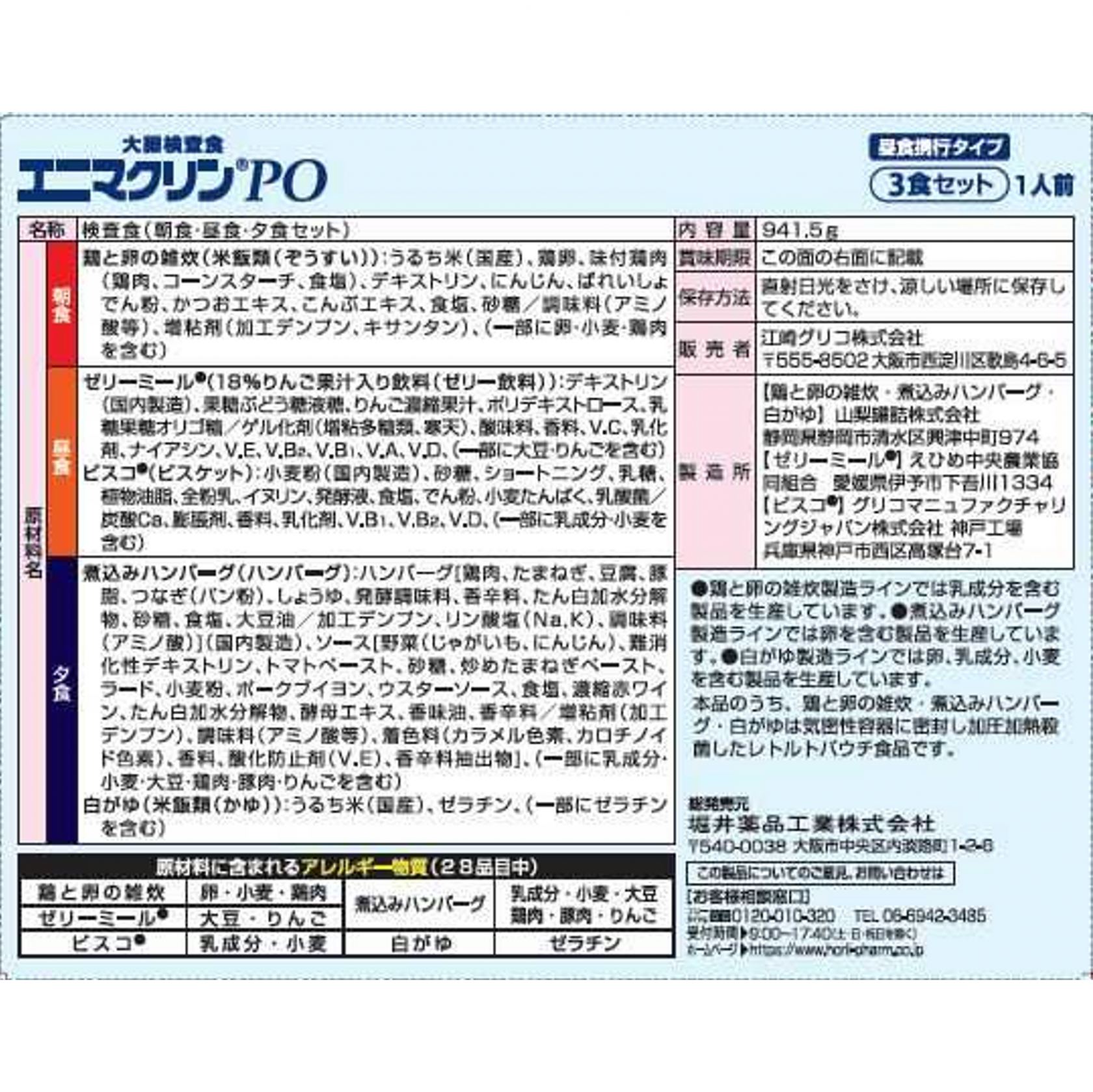 大腸検査食エニマクリンPO 3食セット【昼食携行タイプ】
