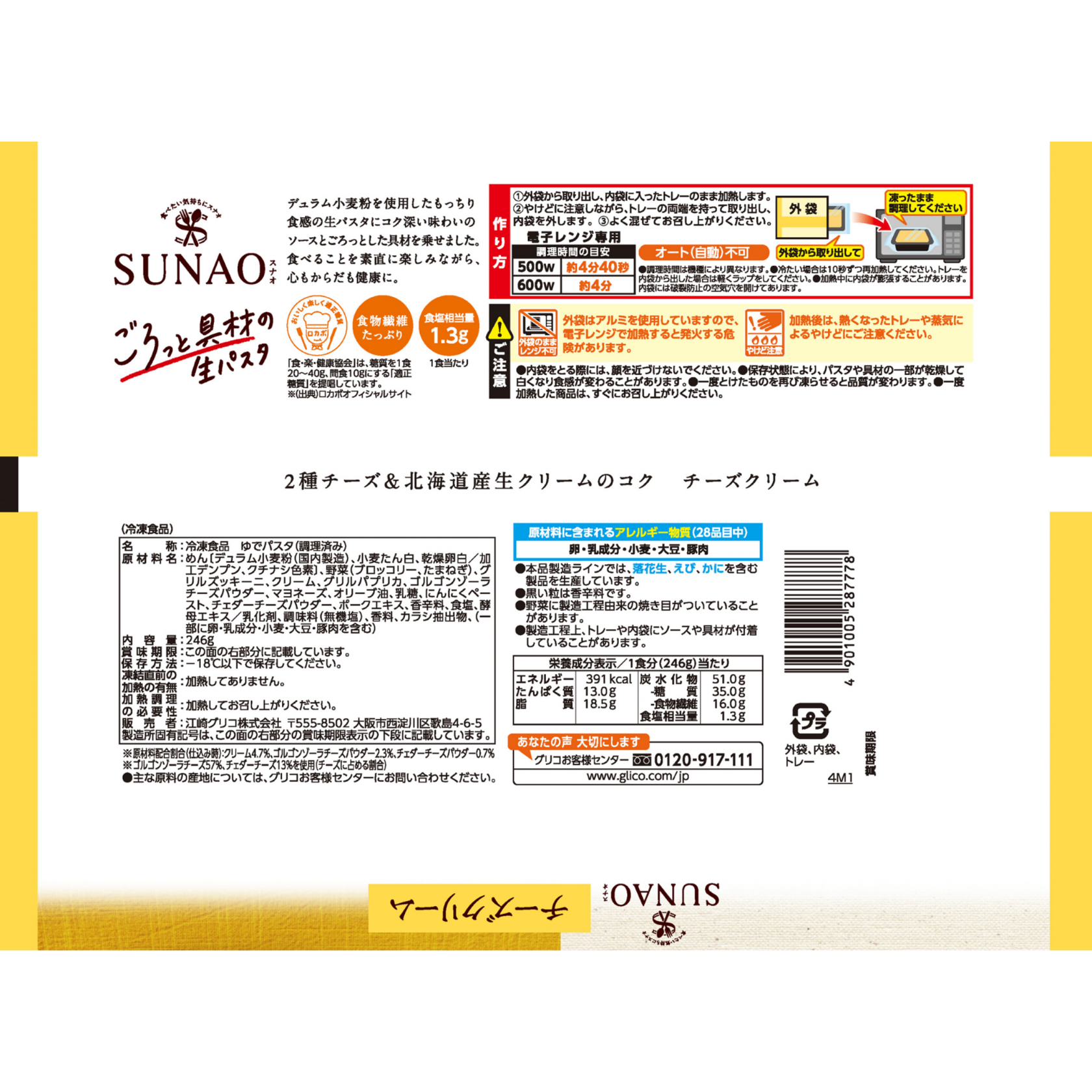 SUNAO ごろっと具材の生パスタ チーズクリーム