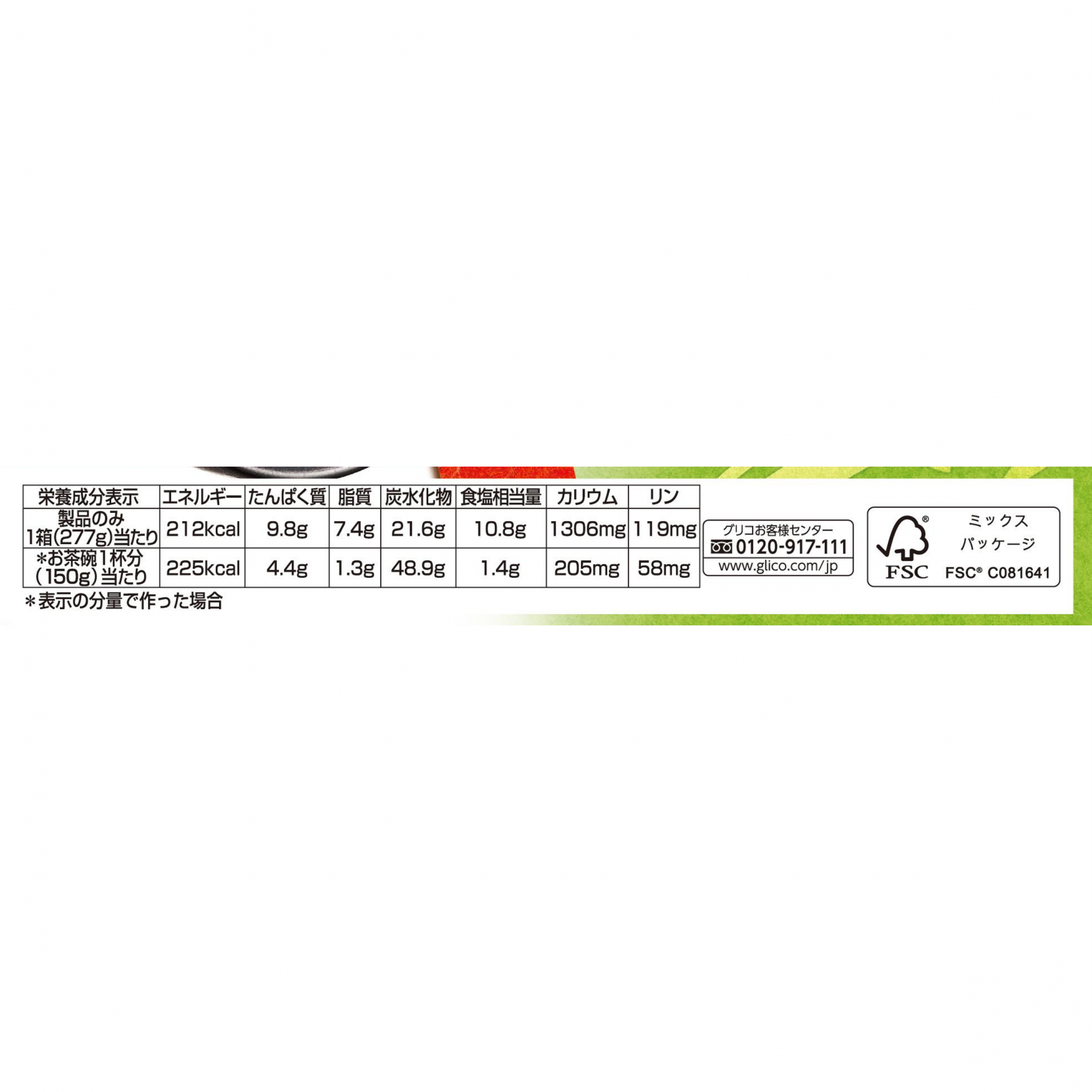 - 栄養成分 製品のみ1箱(277g)当たり