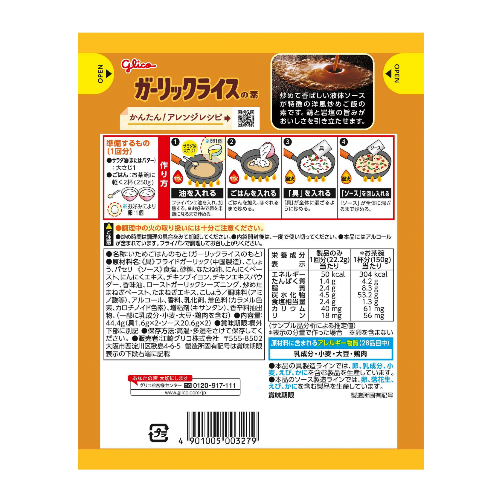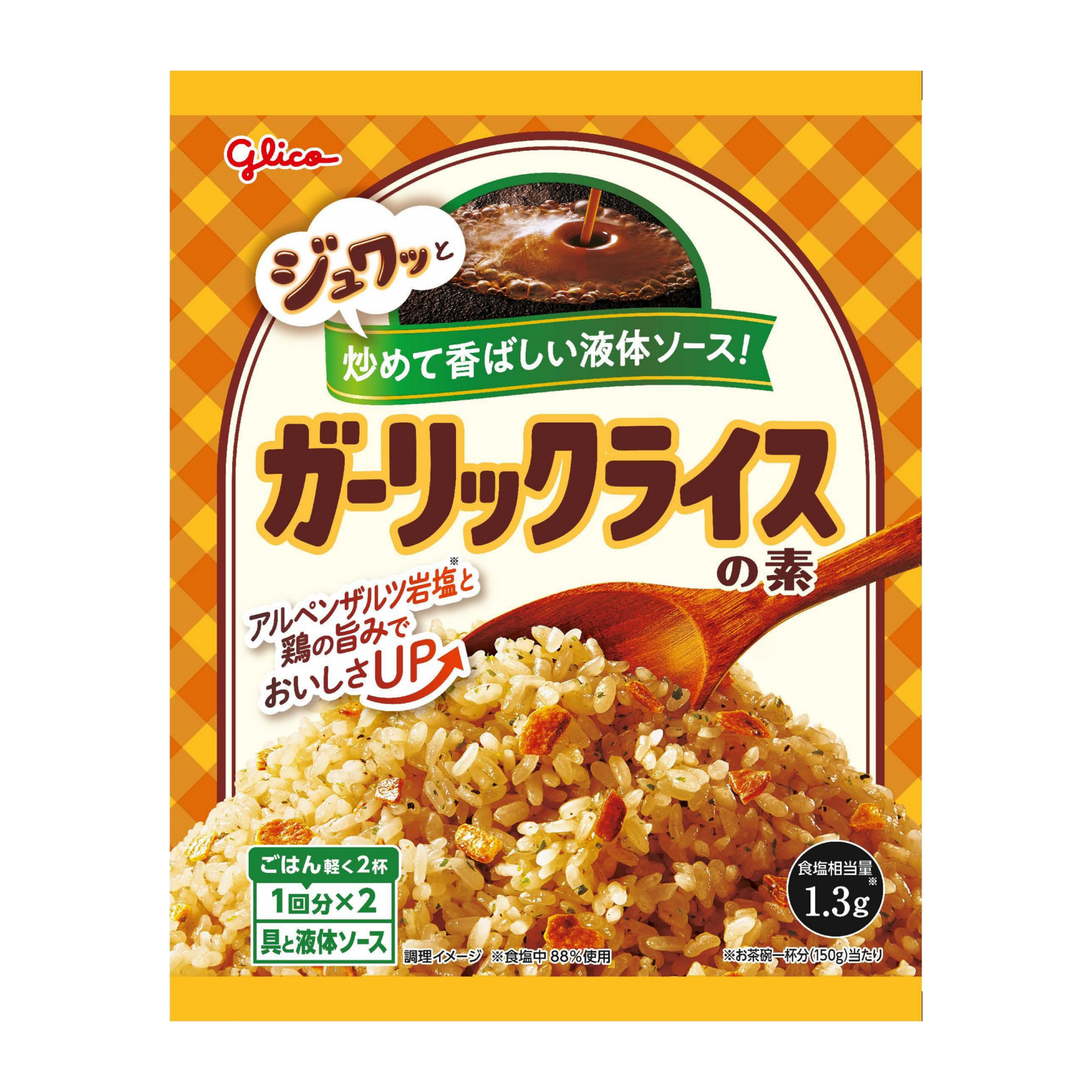 香味野菜のソースで仕上げた、すりおろしにんにくやソテーオニオンの風味が特長のガーリックライスの素です。アルペンザルツ岩塩(食塩中88%使用)と鶏の旨みでおいしさアップ。