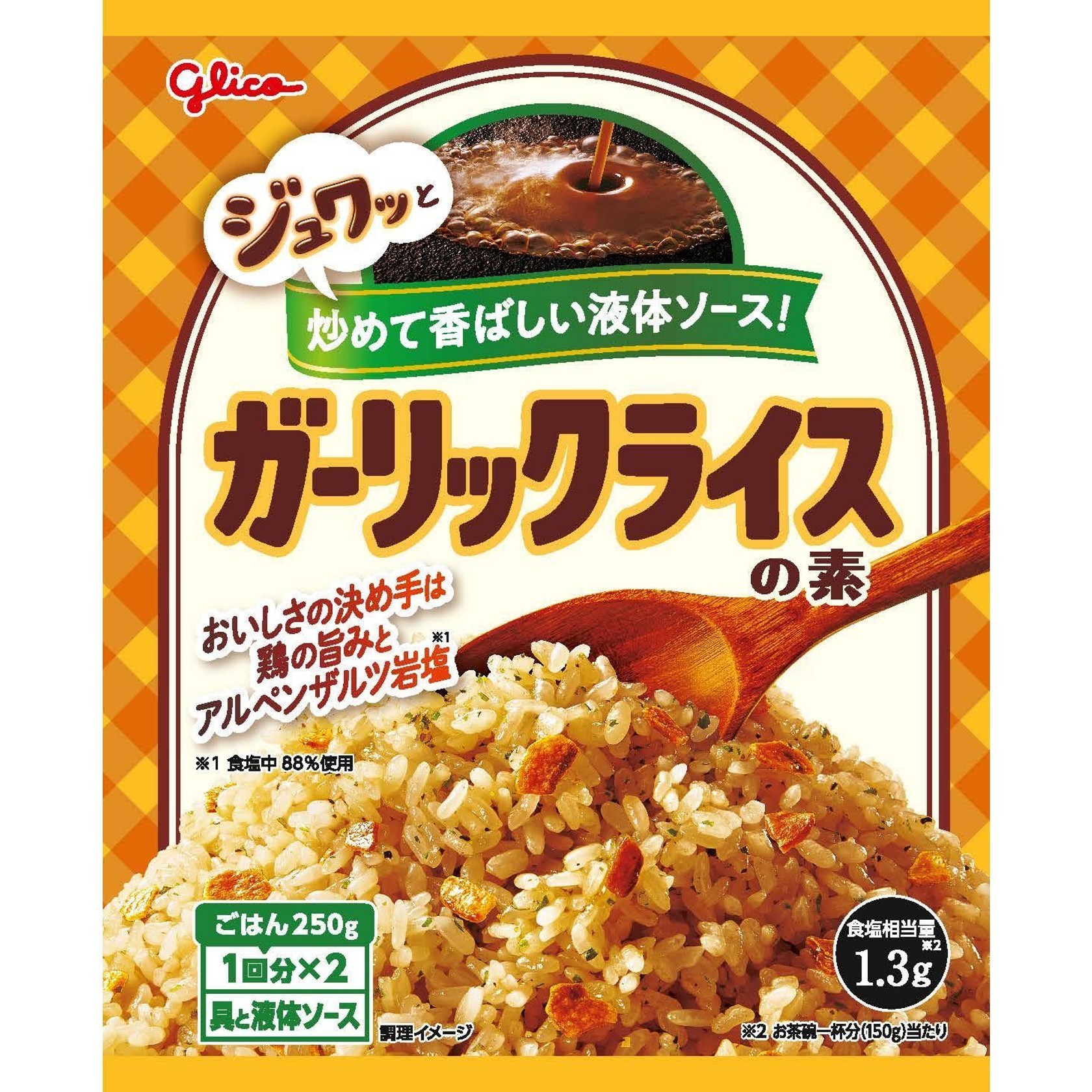 ジュワッと炒めて香ばしい液体ソースが特長のガーリックライスの素です。おいしさの決め手は、鶏の旨みとアルペンザルツ岩塩(食塩中88%使用)。お茶碗一杯分(150g)当たりの食塩相当量は1.3g以下。