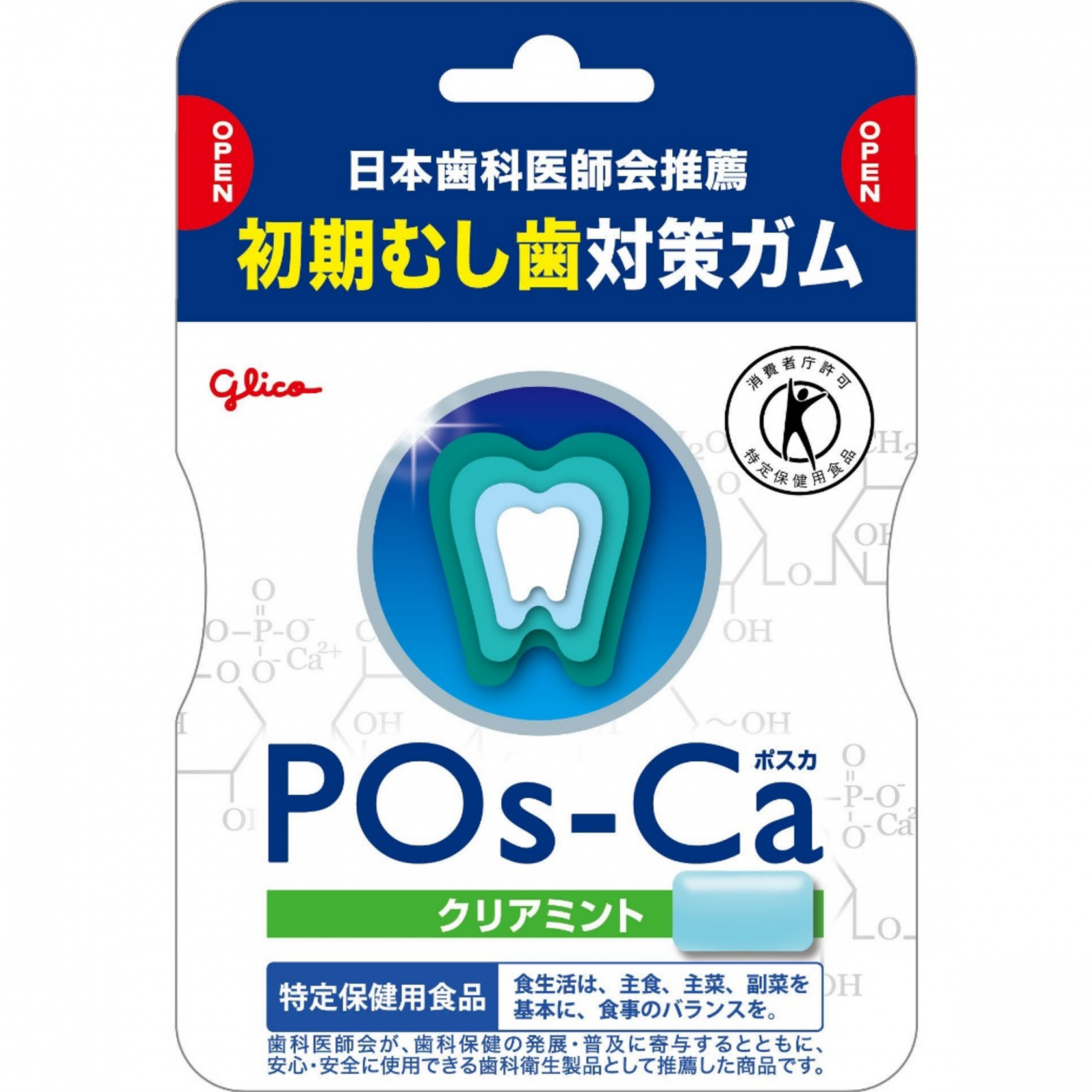 歯の主成分はカルシウムです。ポスカは水溶性カルシウム【POs-Ca(R)】を配合しているので、カルシウムの浸透を促し、初期むし歯のはじまりである脱灰部位が、再石灰化と再結晶化をしやすい口内環境に整えます。特定保健用食品。日本歯科医師会推薦品です。