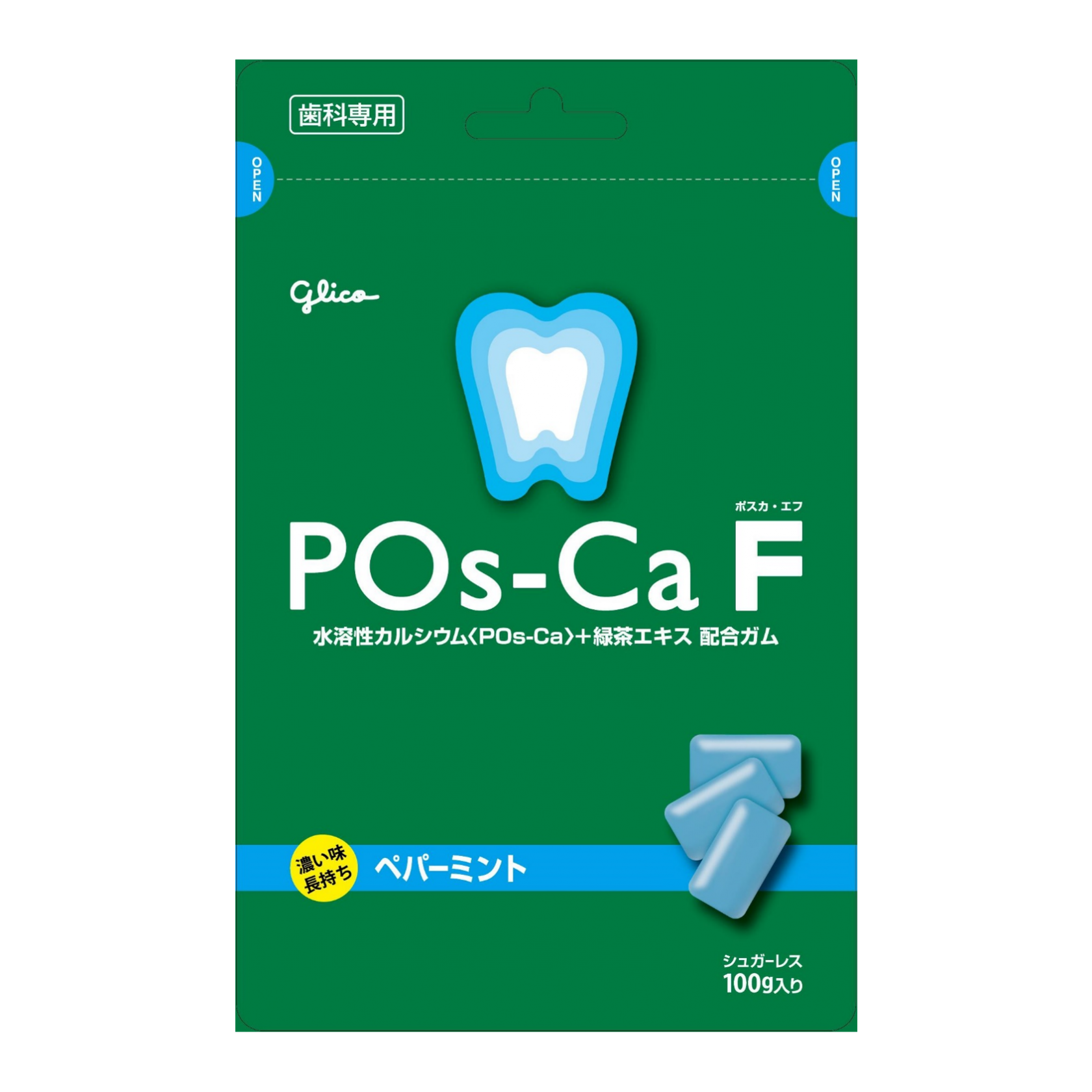お口に広がるミントの爽快感。かむたびに、カルシウムとフッ素(フッ化物)イオンがお口に広がる 歯科専用ガム POs-Ca F【ポスカ・エフ】ペパーミント