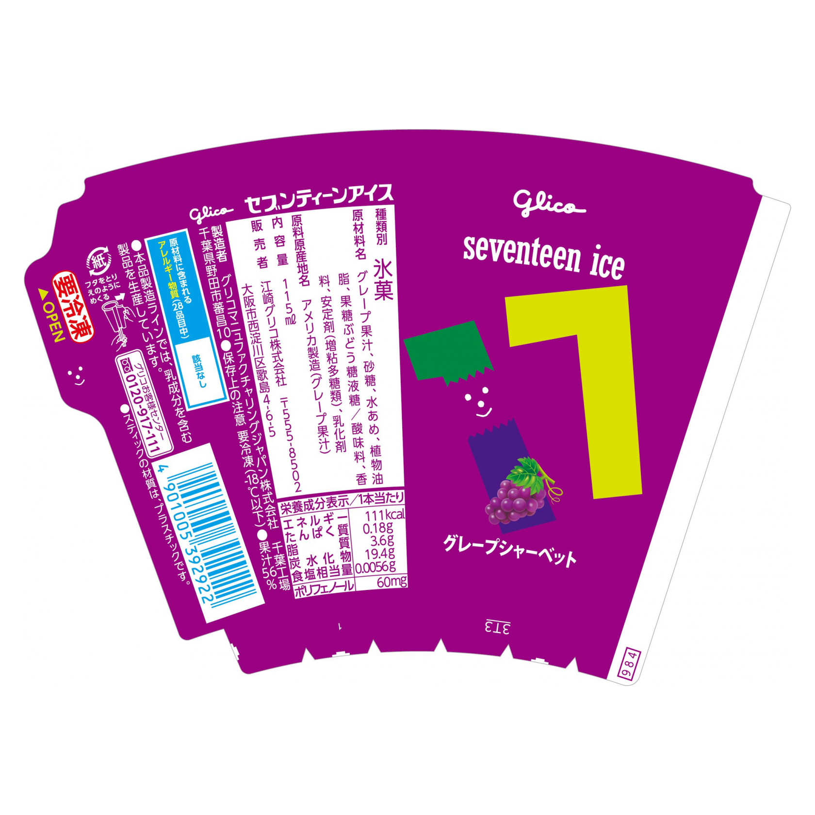 グレープ果汁、砂糖、水あめ、植物油脂、果糖ぶどう糖液糖/酸味料、香料、安定剤(増粘多糖類)、乳化剤