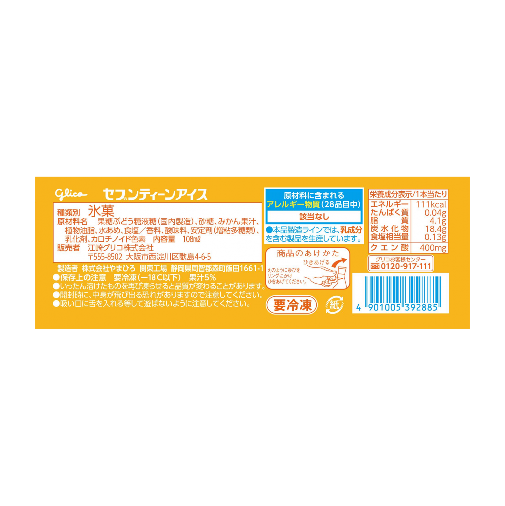果糖ぶどう糖液糖(国内製造)、砂糖、みかん果汁、植物油脂、水あめ、食塩/香料、酸味料、安定剤(増粘多糖類)、乳化剤、カロチノイド色素