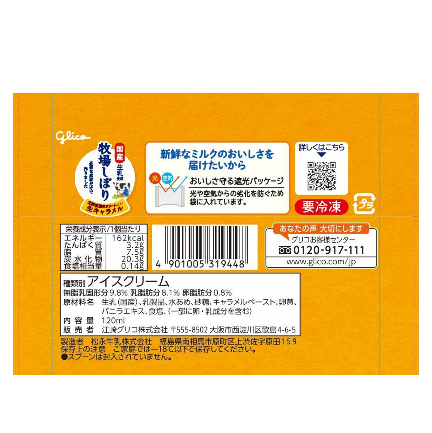 生乳(国産)、乳製品、水あめ、砂糖、キャラメルペースト、卵黄、バニラエキス、食塩、(一部に卵・乳成分を含む)
