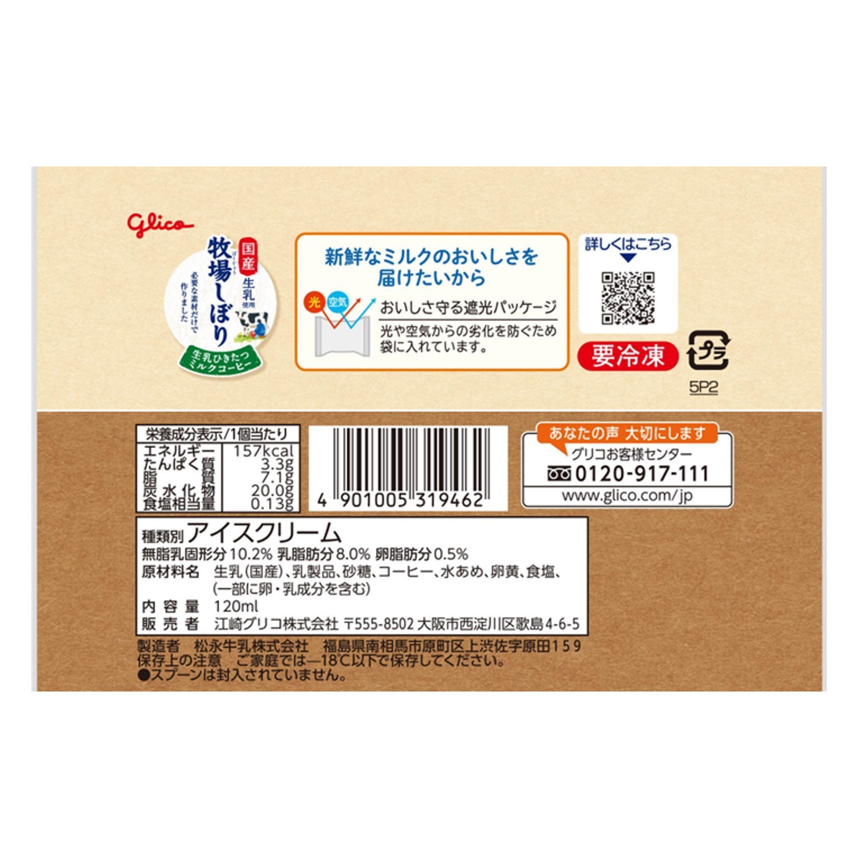 牧場で食べたあの味を届けたい。国産「生ミルク」(生乳=しぼったままの牛乳)を使ったアイスクリームです。使っているのは国産原料を中心に食品素材だけ(乳製品、卵黄も国産)。 ミルクとコーヒーの素材本来のコクと雑味のない滑らかな後口をお楽しみください。 ※エチオピア産コーヒー豆72%、ブラジル産コーヒー豆28%配合 (生豆換算) ※カフェイン含有量(1個あたり):25.5mg